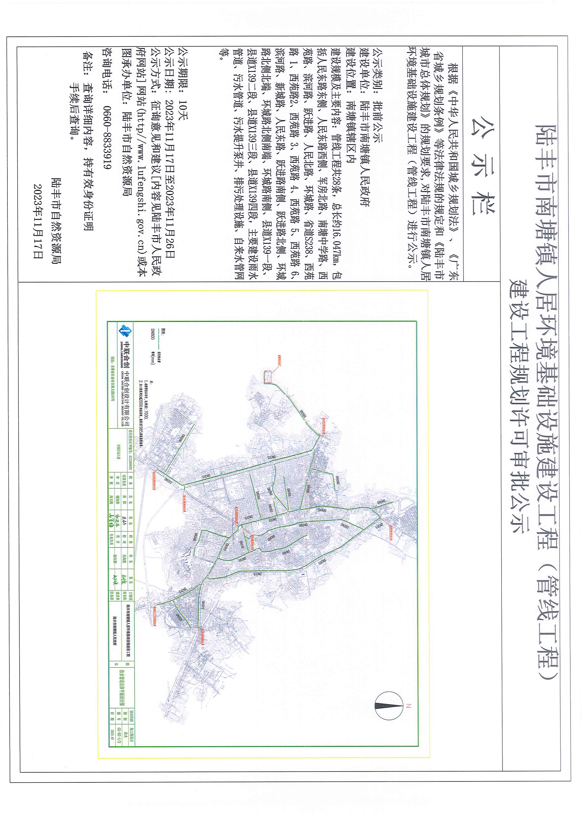 陸豐市南塘鎮(zhèn)人居環(huán)境基礎(chǔ)設(shè)施建設(shè)工程(管線工程)建設(shè)工程規(guī)劃許可審批公示
