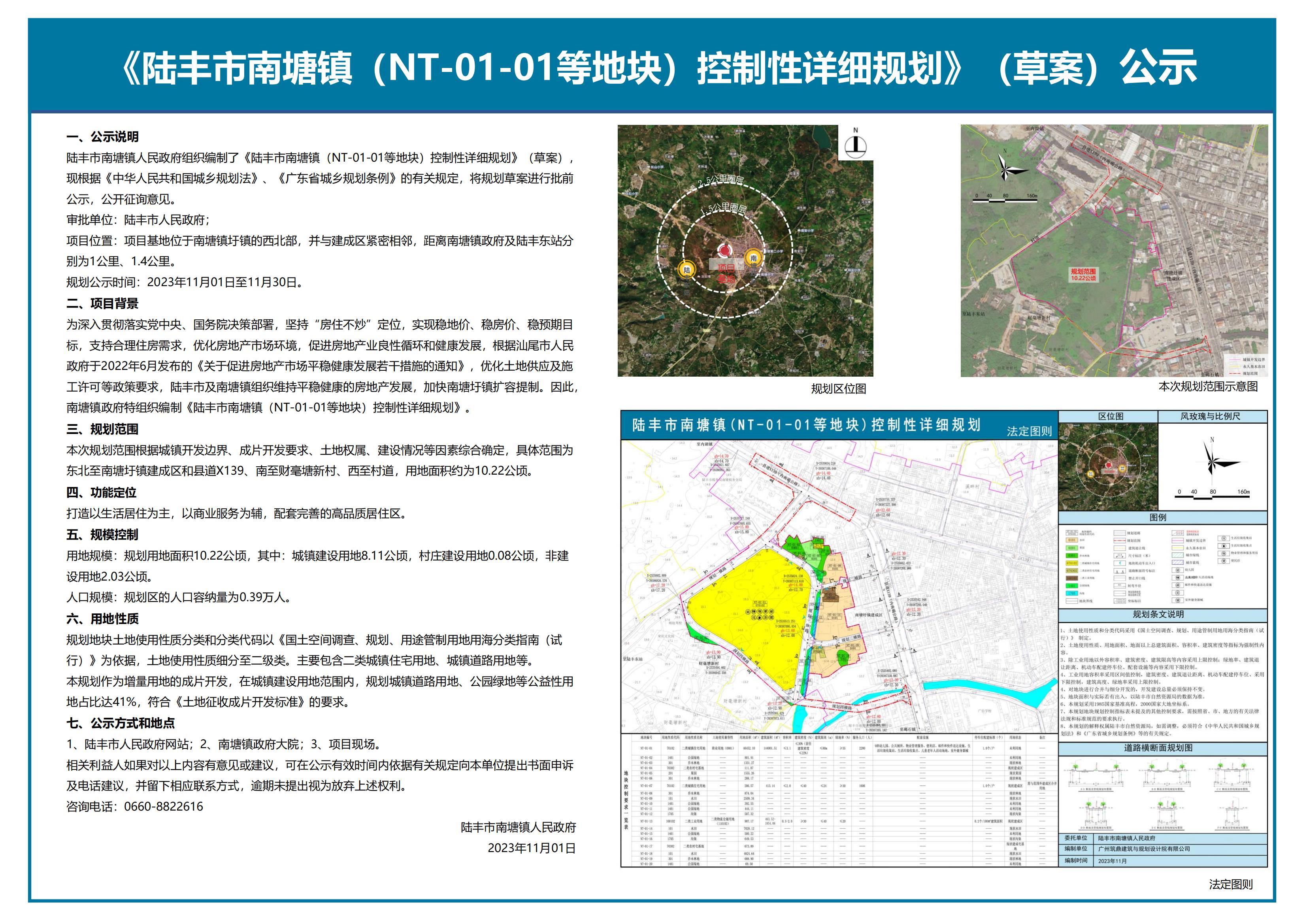 《陸豐市南塘鎮(zhèn) (NT-01-01等地塊)控制性詳細(xì)規(guī)劃(草案)》公示