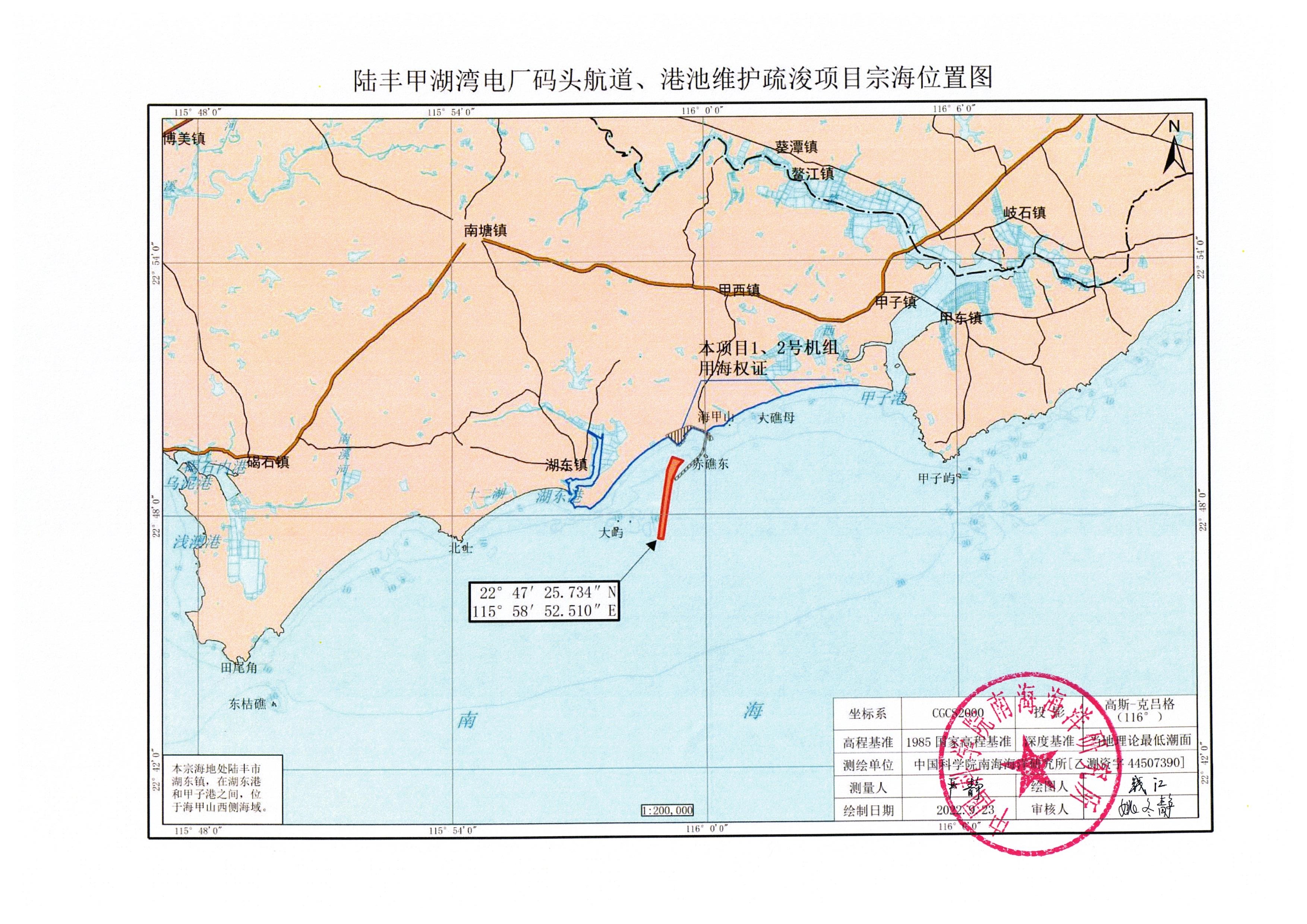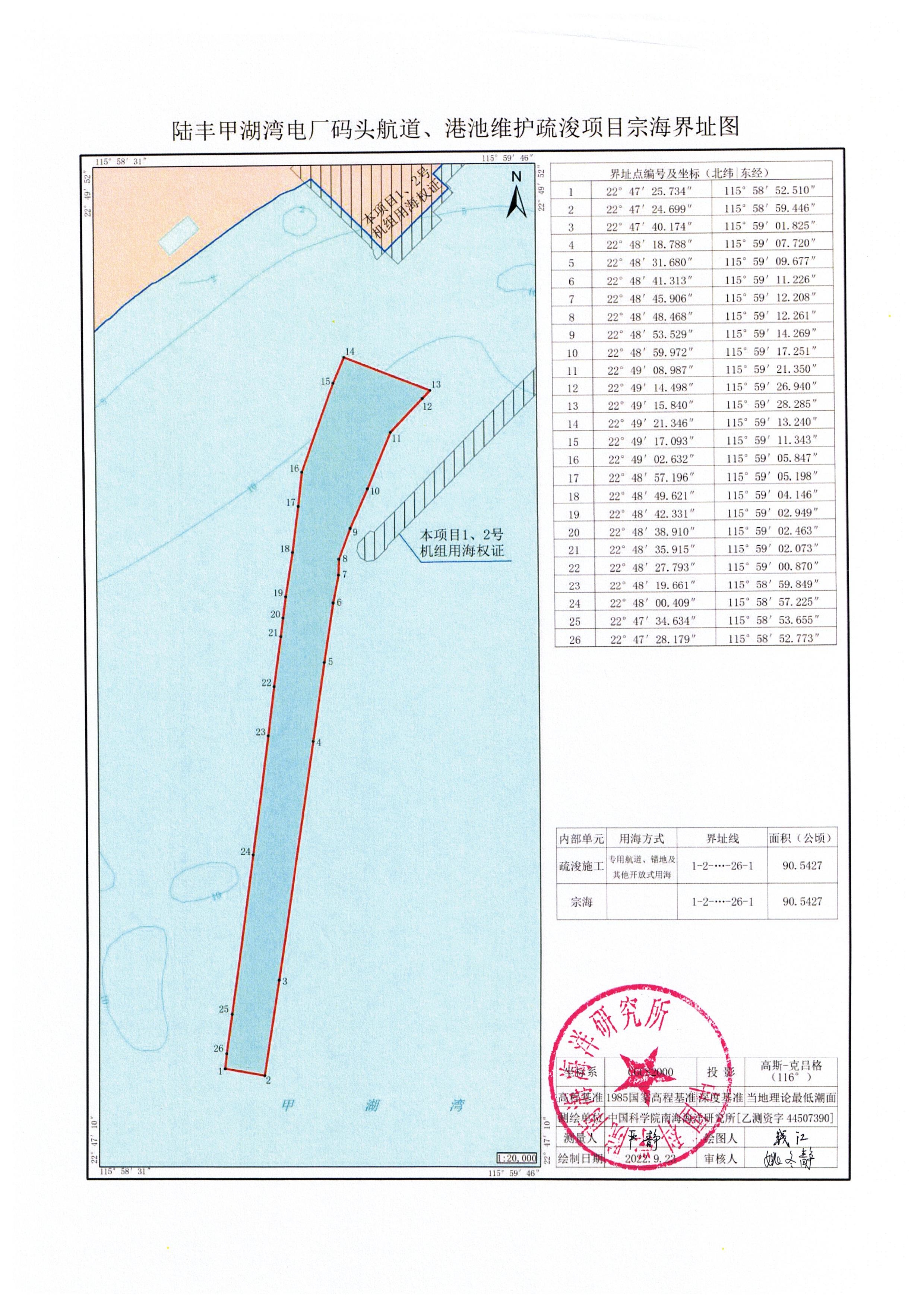 一、陸豐甲湖灣電廠碼頭航道、港池維護(hù)性疏浚項目位于陸豐市湖東鎮(zhèn)陸豐甲湖灣電廠海甲山西側(cè)海域擬申請使用海域,用海面積90.5427 公頃,用海類型為工業(yè)用海中的電力工業(yè)用海,用海方式為開放式用海中的專用航道、錨地及其它開放式用海,申請用海期限為2.5個月,具體界址點及坐標(biāo)見附件。