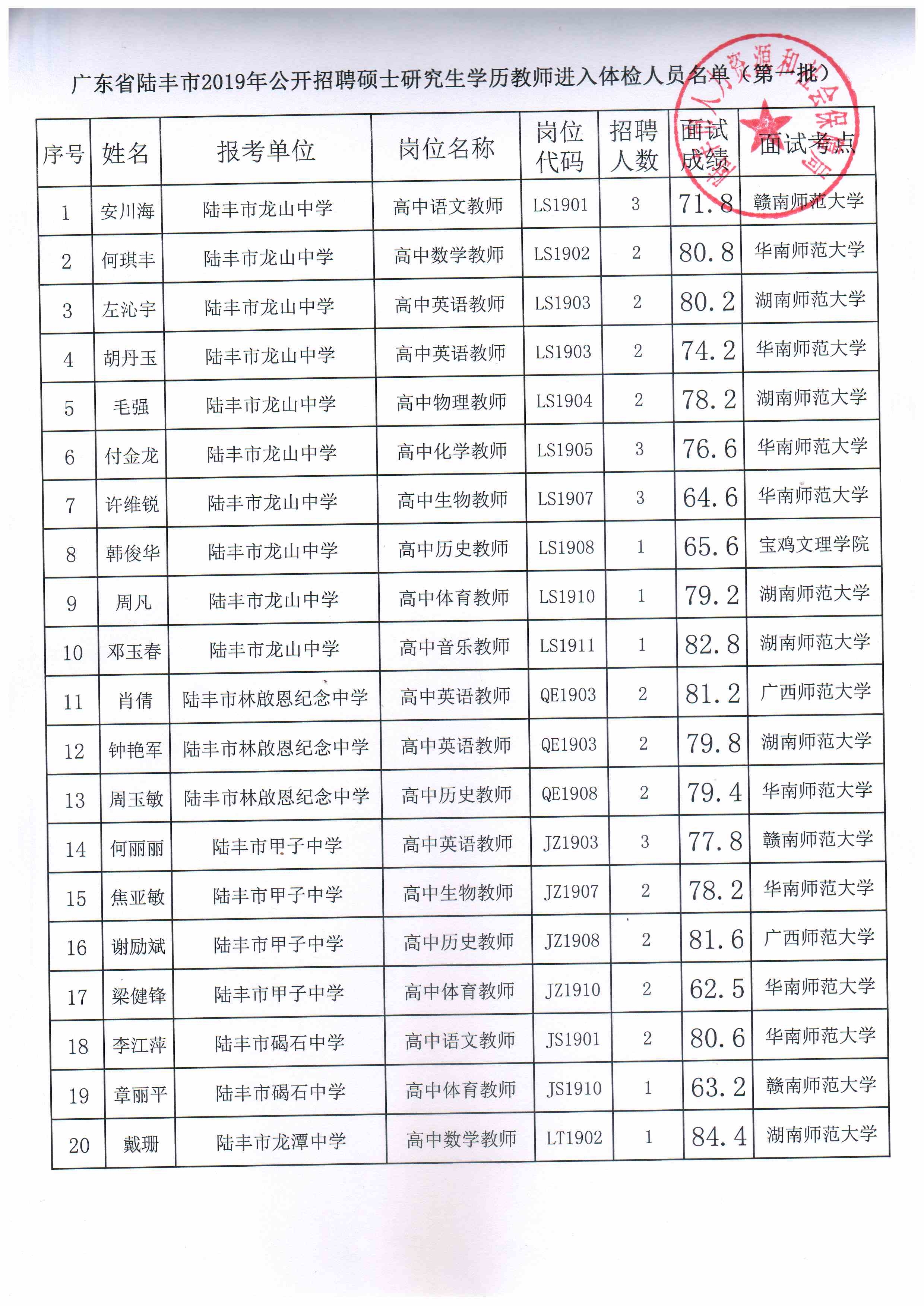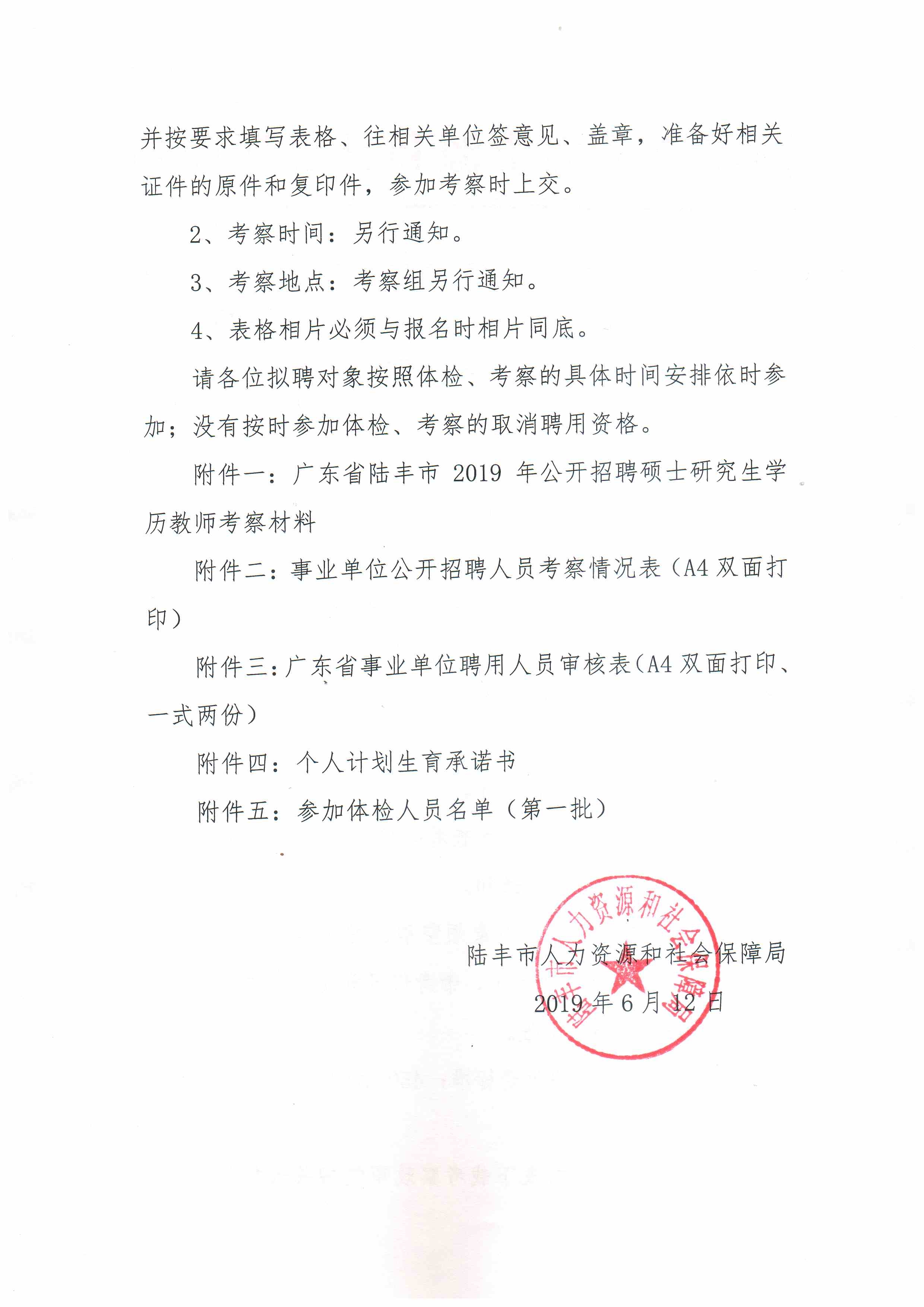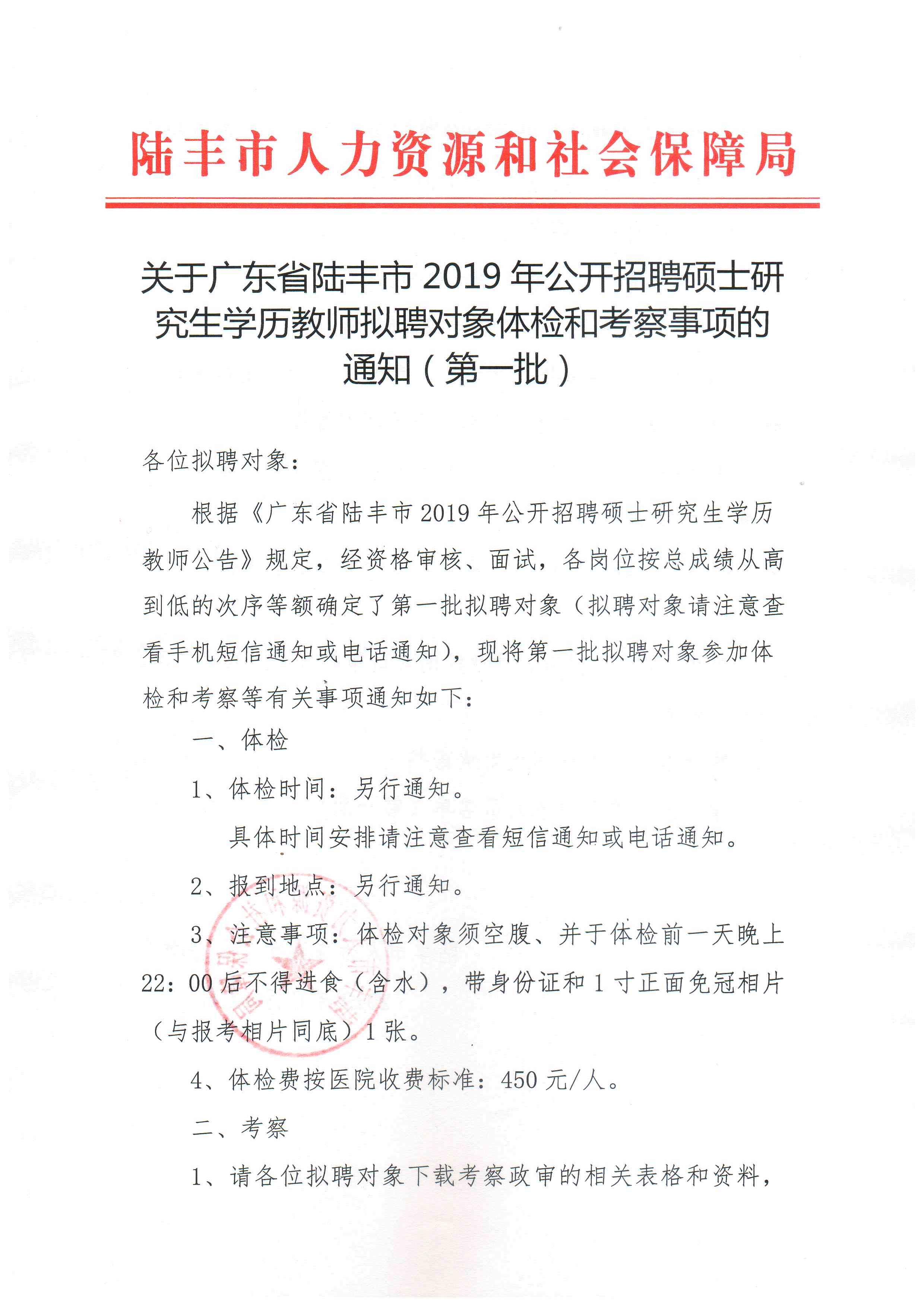 關(guān)于廣東省陸豐市2019年公開招聘碩士研究生學(xué)歷教師擬聘對象體檢和考察事項(xiàng)的通知(第一批)