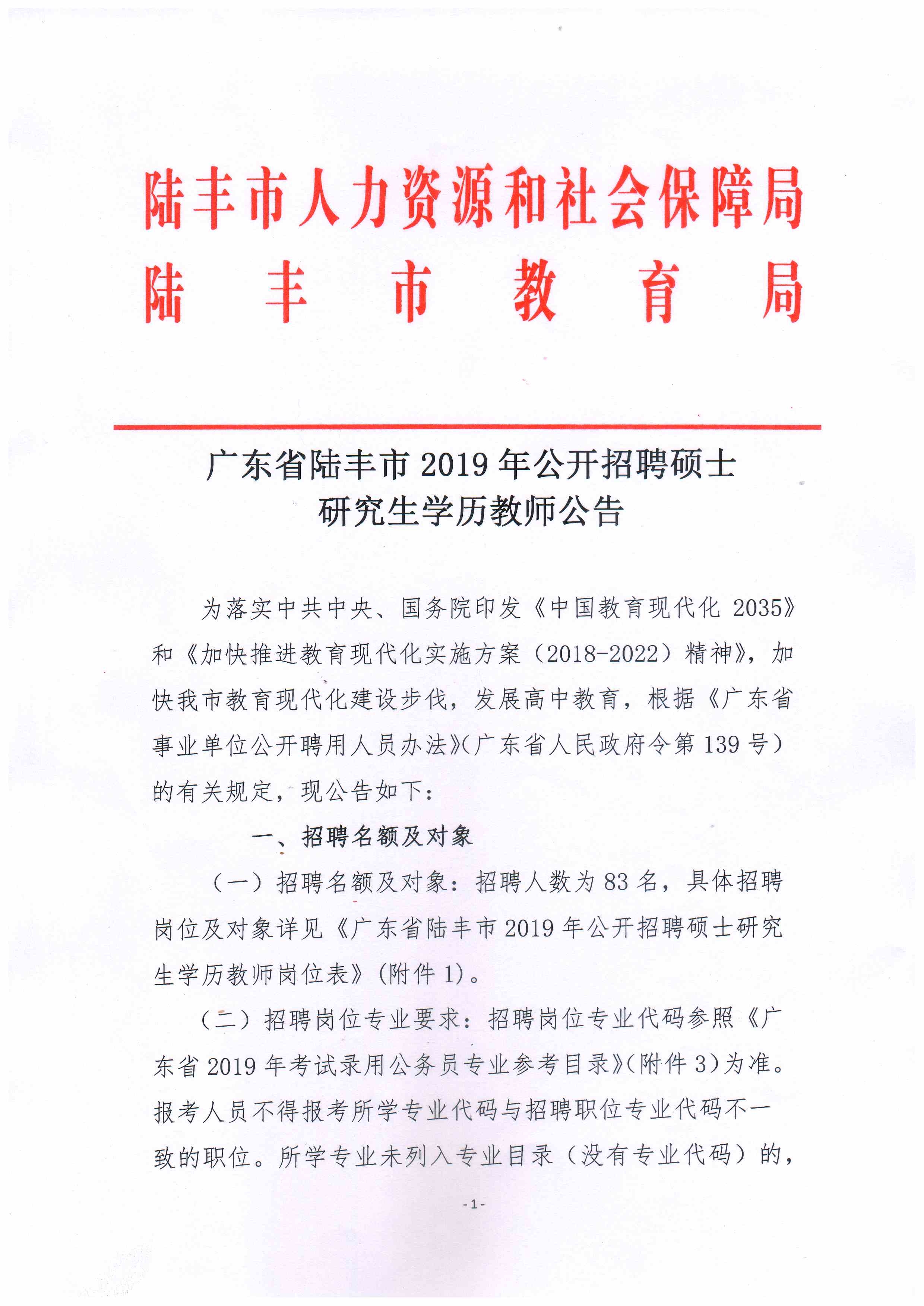 廣東省陸豐市2019年公開招聘碩士研究生學(xué)歷教師公告