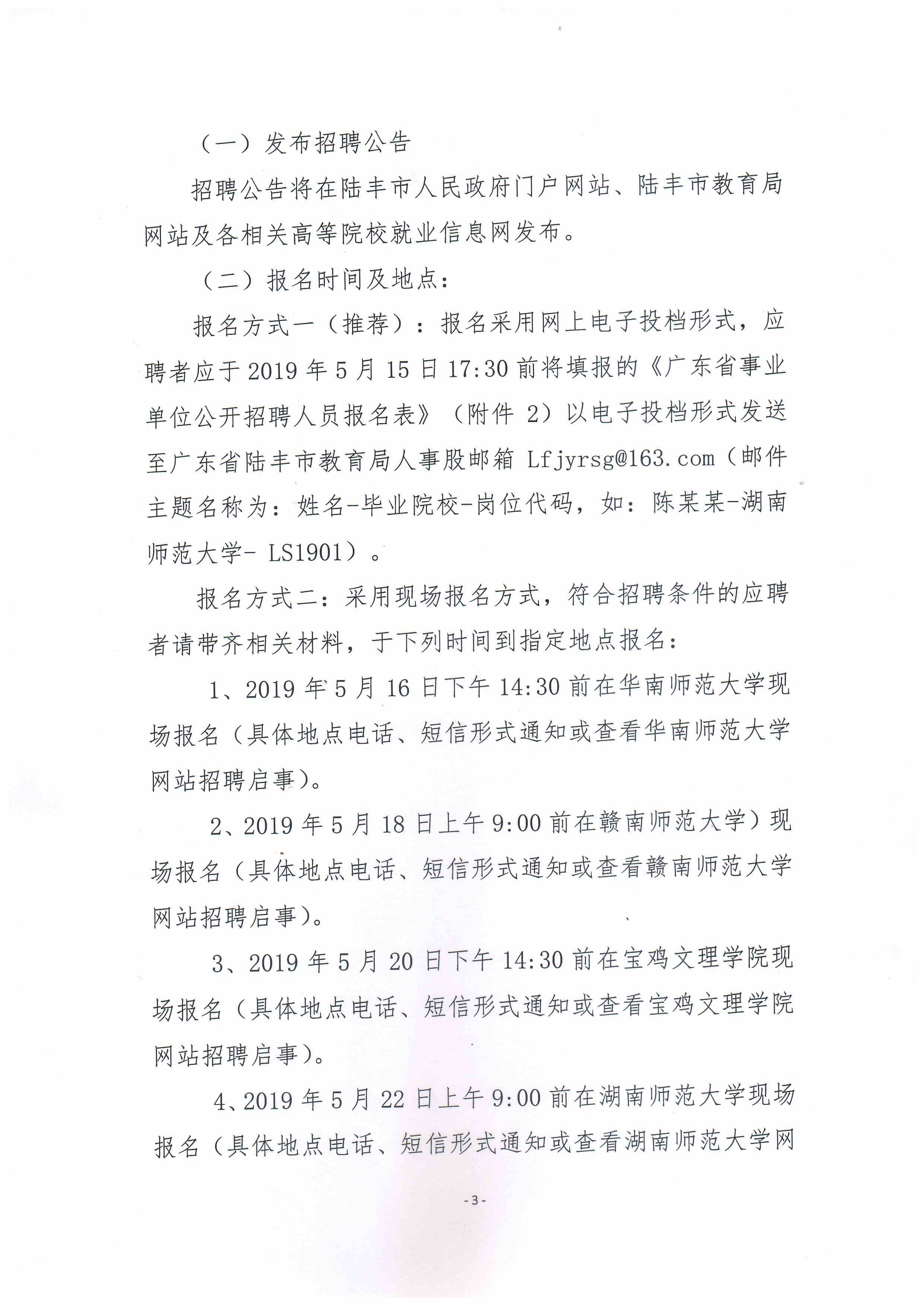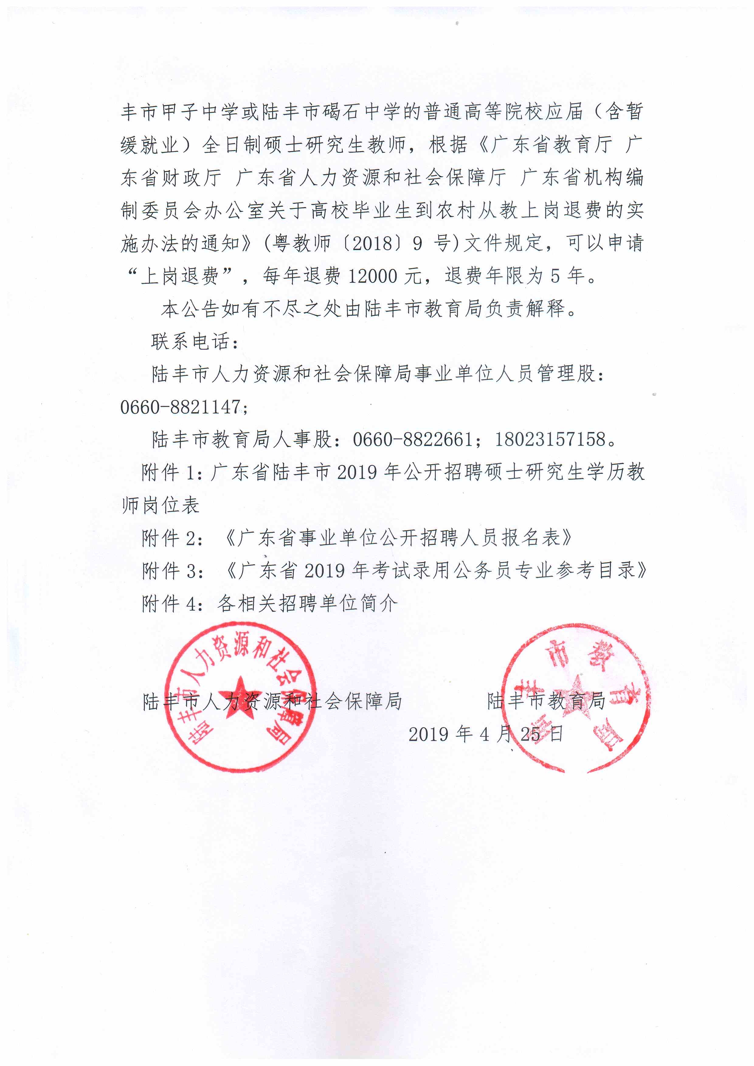 附件1:廣東省陸豐市2019年公開招聘碩士研究生學(xué)歷教師崗位表