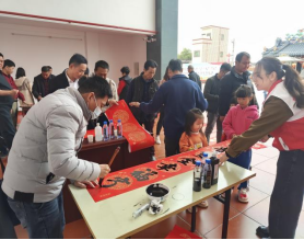 活動現(xiàn)場,老師們揮毫潑墨,將新春祝福融于筆墨,把美好希冀留于紙上。墨香四溢,年味濃濃。一幅幅春聯(lián)滿懷著黨和人民深切的魚水情,飽含著對新年的憧憬,一個個“?!弊殖溆鴮π履晷職庀蠛娃o舊迎新的美好愿景。村民們都圍繞在書法老師身邊,看著漂亮的毛筆字,贊嘆不已,大家拿到寫滿溫馨祝福和美好祝愿的春聯(lián),喜悅之情溢于言表,并紛紛點贊。