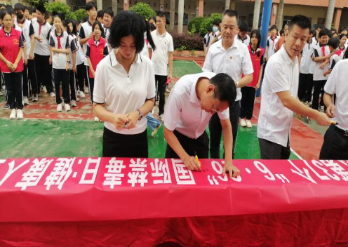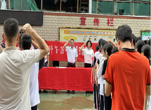 與此同時,伴隨城東中學操場上冉冉升起的五星紅旗,分會場活動正式開啟。街道辦黨工委副書記文志慧和常務副主任曾曉霞出席分會場活動,文志慧副書記發(fā)表了動員講話。隨后帶領全體師生進行禁毒宣誓,并開展全體師生“健康人生,綠色無毒”簽字及參觀禁毒教育基地活動。