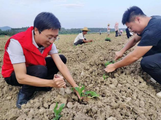 此次工作計劃在已開墾疏松好的30畝撂荒地上種植玉米、番薯,為了了搶抓農(nóng)時,在街道辦主任鄭乙本同志的帶領(lǐng)下,黨員干部、志愿者們深入田間,齊齊動手挖小坑、施化肥,插秧苗,廣大黨員亮身份、作表率,通過盤活土地資源,30畝的撂荒地搖身一變成為“致富田”。