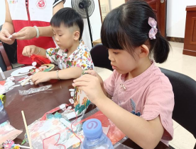 活動(dòng)中,小朋友們對(duì)此次活動(dòng)表現(xiàn)出濃厚的興趣,志愿者向參加活動(dòng)的小朋友發(fā)放制作燈籠的材料包,并詳細(xì)講解展示了制作燈籠步驟。小朋友們迫不及待地打開材料包,按照志愿者講解的步驟動(dòng)起手來(lái)。整個(gè)制作過(guò)程中,小朋友們都非常積極地進(jìn)行交流、探索,遇到處理不了的尋找志愿者哥哥姐姐們的幫助,你一言我一語(yǔ),有說(shuō)有笑,一步一步地把燈籠制作完成。結(jié)束后大家合影留念,記錄這幸福一刻。