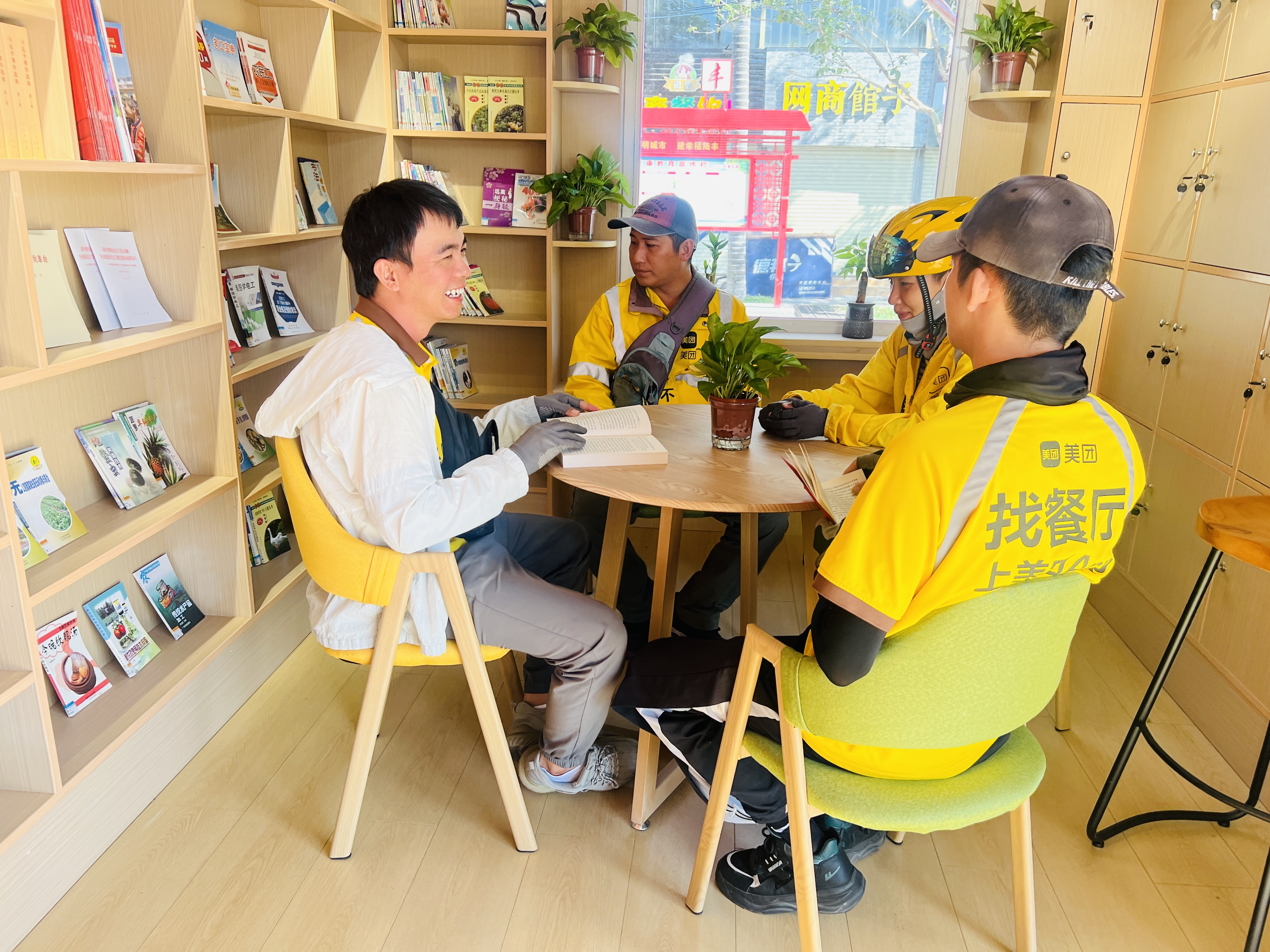 聚焦“學(xué)教有效”打造學(xué)習(xí)“新”支點。圍繞推動學(xué)習(xí)貫徹習(xí)近平新時代中國特色社會主義思想主題教育在新業(yè)態(tài)新就業(yè)群體黨員中落地生根,東海街道堅持把紅色驛站+ “快遞外賣小哥加油站”打造成新業(yè)態(tài)新就業(yè)群體黨員參與主題教育的學(xué)習(xí)園地,設(shè)立主題教育“學(xué)習(xí)角”,及時添置一批主題教育學(xué)習(xí)資料,讓新業(yè)態(tài)新就業(yè)群體在休憩、充電之余加強理論學(xué)習(xí),引導(dǎo)新業(yè)態(tài)新就業(yè)群體準(zhǔn)確把握黨的二十大報告等黨的創(chuàng)新理論。同時依托“善美先鋒”、“陸豐黨建”等微信公眾號和微信群等,及時推送“主題教育有聲書” 等主題教育線上學(xué)習(xí)材料,打造線上線下學(xué)習(xí)矩陣,實現(xiàn)新業(yè)態(tài)新就業(yè)群體黨員主題教育全覆蓋?!霸诘却唵蔚男菹r間還能到加油站吹吹空調(diào)、看看書籍,身體得到放松的同時也能保證學(xué)習(xí)不掉隊,既幸福又充實?!蓖赓u員阿東開心地說道。