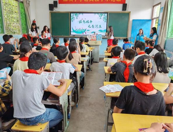 活動(dòng)中,鎮(zhèn)團(tuán)委書記廖靜向孩子們介紹了端午節(jié)的由來和傳統(tǒng)習(xí)俗,從屈原的忠誠壯舉,到粽子和龍舟的象征意義,通過播放PPT圖片形式講解詳盡而生動(dòng),孩子們聽得津津有味。同時(shí),通過互動(dòng)搶答競(jìng)賽的形式,調(diào)動(dòng)現(xiàn)場(chǎng)學(xué)習(xí)氛圍,給回答正確的孩子送端午節(jié)禮品。孩子們精神煥發(fā),躍躍欲試,都做出了舉手搶答的準(zhǔn)備,通過剛剛的知識(shí)科普,每個(gè)問題一出就有孩子敏捷的舉手搶答,現(xiàn)場(chǎng)氣氛非常歡快。志愿者用豐富的活動(dòng)載體,拓寬了孩子學(xué)習(xí)傳統(tǒng)文化渠道,在繼承和發(fā)揚(yáng)我國優(yōu)秀傳統(tǒng)文化的同時(shí),學(xué)習(xí)變得生動(dòng)而富有樂趣。