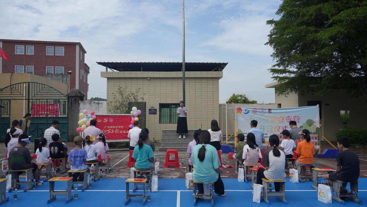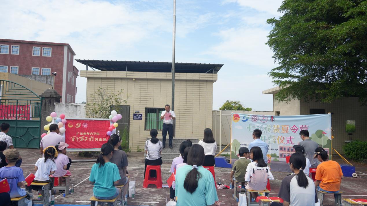 8月13日上午,由共青團陸豐市河東鎮(zhèn)委員會、陸豐市河東鎮(zhèn)大屯村民委員會、廣東交通職業(yè)技術學院運輸與經(jīng)濟管理學院、河東鎮(zhèn)大屯小學共同舉辦的“七彩戎裝”夏令營活動,在河東鎮(zhèn)大屯小學正式拉開帷幕。河東鎮(zhèn)黨委副書記余梓喬、團委書記廖靜,大屯村黨支部書記林逢龍,大屯小學副校長賴永松,廣東交通職業(yè)技術學院運輸與經(jīng)濟管理學院副院長趙紅英,綜合部主任吳雙芳、輔導員曾生峰以及參與學員學生及家長們共60余人參與了此次活動。開幕儀式由實踐隊退役軍人肖嘉誠主持。