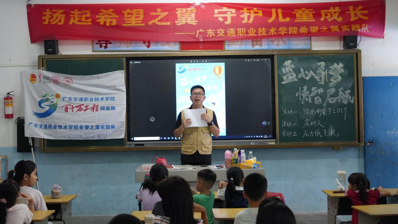 2024年8月14日,廣東交通職業(yè)技術(shù)學(xué)院希望之翼實(shí)踐隊(duì)在河?xùn)|鎮(zhèn)大屯小學(xué)成功舉辦了一場(chǎng)以藍(lán)色為元素、名為“藍(lán)心尋夢(mèng),情智啟航”的心理主題活動(dòng),該活動(dòng)由實(shí)踐隊(duì)指導(dǎo)老師曾生峰主持。