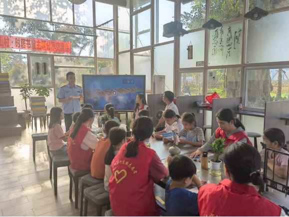 課堂結束后,青少年們當起了交通安全知識小小宣傳員,跟著文明實踐志愿者一起開展入戶宣傳活動,在宣傳的過程中,不僅進一步加深了相關知識的印象,還鍛煉了語言表達能力,豐富了假期體驗。