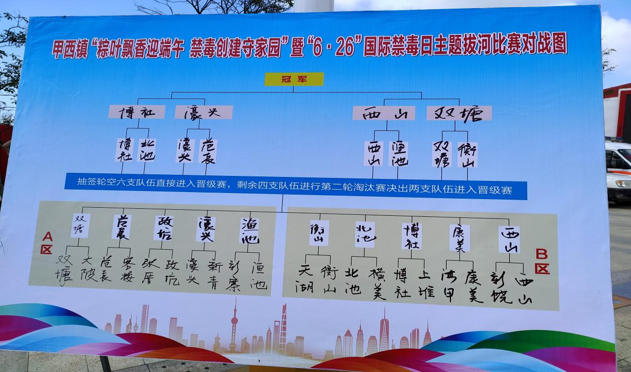 在上級(jí)部門及社會(huì)愛心人士的大力支持下,6月20日,甲西鎮(zhèn)黨委、政府借助國際禁毒日和端午佳節(jié)來臨之際有利契機(jī),在甲西鎮(zhèn)博社村“黨建+禁毒”主題公園組織開展“粽葉飄香迎端午 禁毒創(chuàng)建守家園”暨“6·26”國際禁毒日主題拔河比賽,積極探索構(gòu)建甲西鎮(zhèn)“運(yùn)動(dòng)+禁毒”的禁毒示范創(chuàng)建宣傳創(chuàng)新模式,深入開展倡導(dǎo)“全民健身 遠(yuǎn)離毒品”大型群眾性文體活動(dòng),有效調(diào)動(dòng)社會(huì)各界力量的積極參與,形成全民禁毒濃烈氛圍。