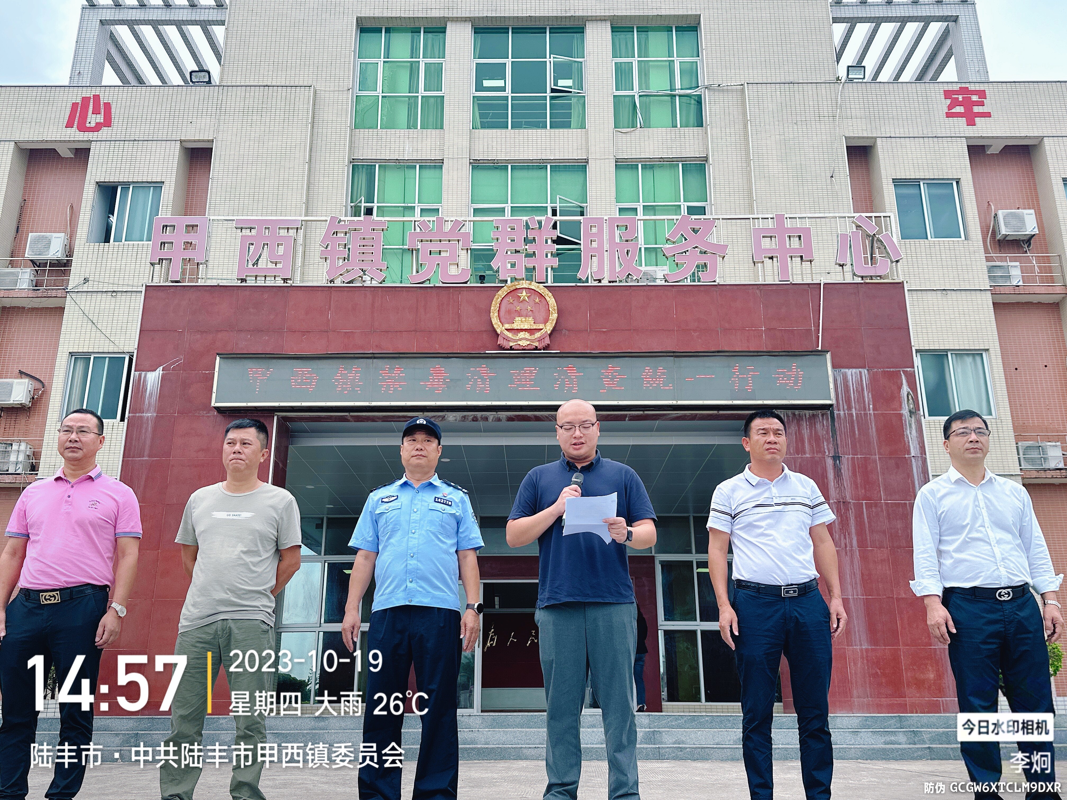 下午3點(diǎn)整,全體行動(dòng)人員配齊裝備,在鎮(zhèn)府大院列隊(duì)集合整裝待發(fā)。陸豐市政協(xié)副主席、鎮(zhèn)黨委書(shū)記傅錦沖任本次行動(dòng)總指揮,甲西鎮(zhèn)黨委副書(shū)記、鎮(zhèn)長(zhǎng)劉嘉澤作行動(dòng)前動(dòng)員講話,市公安局禁毒大隊(duì)負(fù)責(zé)人林衛(wèi)東作具體行動(dòng)部署,鎮(zhèn)黨委副書(shū)記林俊生,鎮(zhèn)黨委委員、人武部長(zhǎng)林良榜,副鎮(zhèn)長(zhǎng)鐘文軍,鎮(zhèn)人大副主席朱春偉等到現(xiàn)場(chǎng)帶隊(duì)參加行動(dòng)。