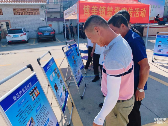 活動(dòng)現(xiàn)場,禁毒工作人員和志愿者更是以此為契機(jī)向基層單位和廣大農(nóng)村群眾精準(zhǔn)開展毒品預(yù)防宣教活動(dòng)。參與單位在廣場上設(shè)立了禁毒咨詢臺(tái)、懸掛橫幅標(biāo)語、擺放禁毒展板,工作人員圍繞“防范麻精藥品濫用”向廣大群眾講解毒品的種類,毒品對(duì)社會(huì)、家庭、個(gè)人帶來的危害,宣傳黨和政府的禁毒政策和禁毒法律法規(guī),告誡大家遠(yuǎn)離毒品,健康生活。同時(shí)耐心解答群眾咨詢的問題,并發(fā)放禁毒宣傳冊。進(jìn)一步提升了廣大群眾對(duì)毒品危害性的認(rèn)識(shí),提高了群眾對(duì)毒品的抵制能力,增強(qiáng)了大家禁絕毒品的決心,使禁毒宣傳教育更加深入人心,營造了全社會(huì)自覺抵制毒品、自愿參與禁毒斗爭的濃厚氛圍。本次活動(dòng)向觀眾派發(fā)了禁毒宣傳手冊共計(jì) 200 余份,現(xiàn)場帶動(dòng)宣傳群體 200 余人,并引導(dǎo)群眾積極關(guān)注廣東禁毒、汕尾禁毒、陸豐禁毒等公眾號(hào)。