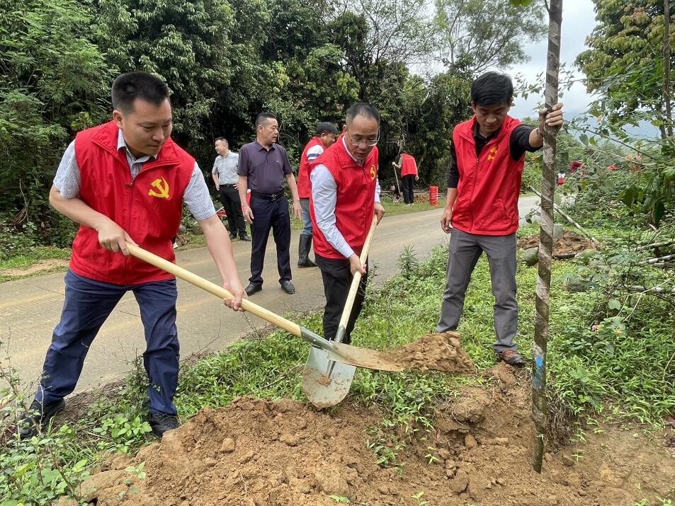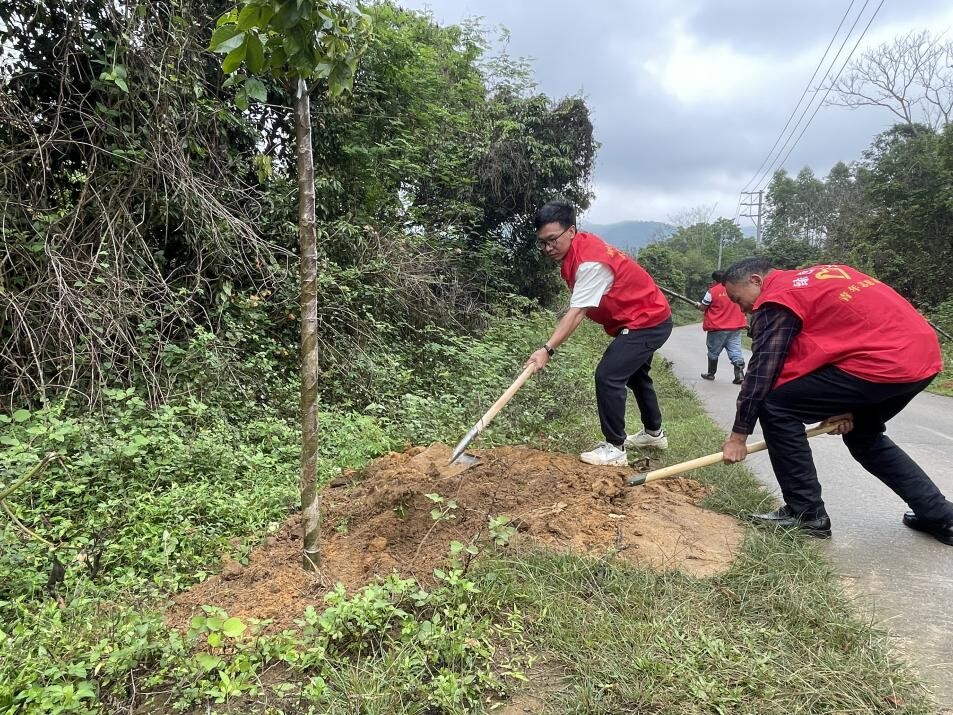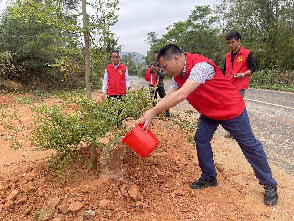 植樹現(xiàn)場(chǎng),眾人熱情高漲、干勁十足,手提水桶、鐵鍬等植樹工具,按照植樹指引要點(diǎn),認(rèn)真細(xì)致做好每一道工序,精心栽下一棵棵樹木,為平地披上“綠衣”。在親身參與中,大家深刻感受到了綠美生態(tài)建設(shè)的辛勞和不易,紛紛表示要積極做好鄉(xiāng)村綠化的宣傳者、參與者、守護(hù)者,為綠美八萬生態(tài)建設(shè)貢獻(xiàn)力量。本次活動(dòng),共種下小葉欖仁和秋楓(胸徑均為6公分)117棵。不斷提升八萬生態(tài)含“綠”量,切實(shí)增進(jìn)了轄區(qū)人民群眾“綠色福祉”。