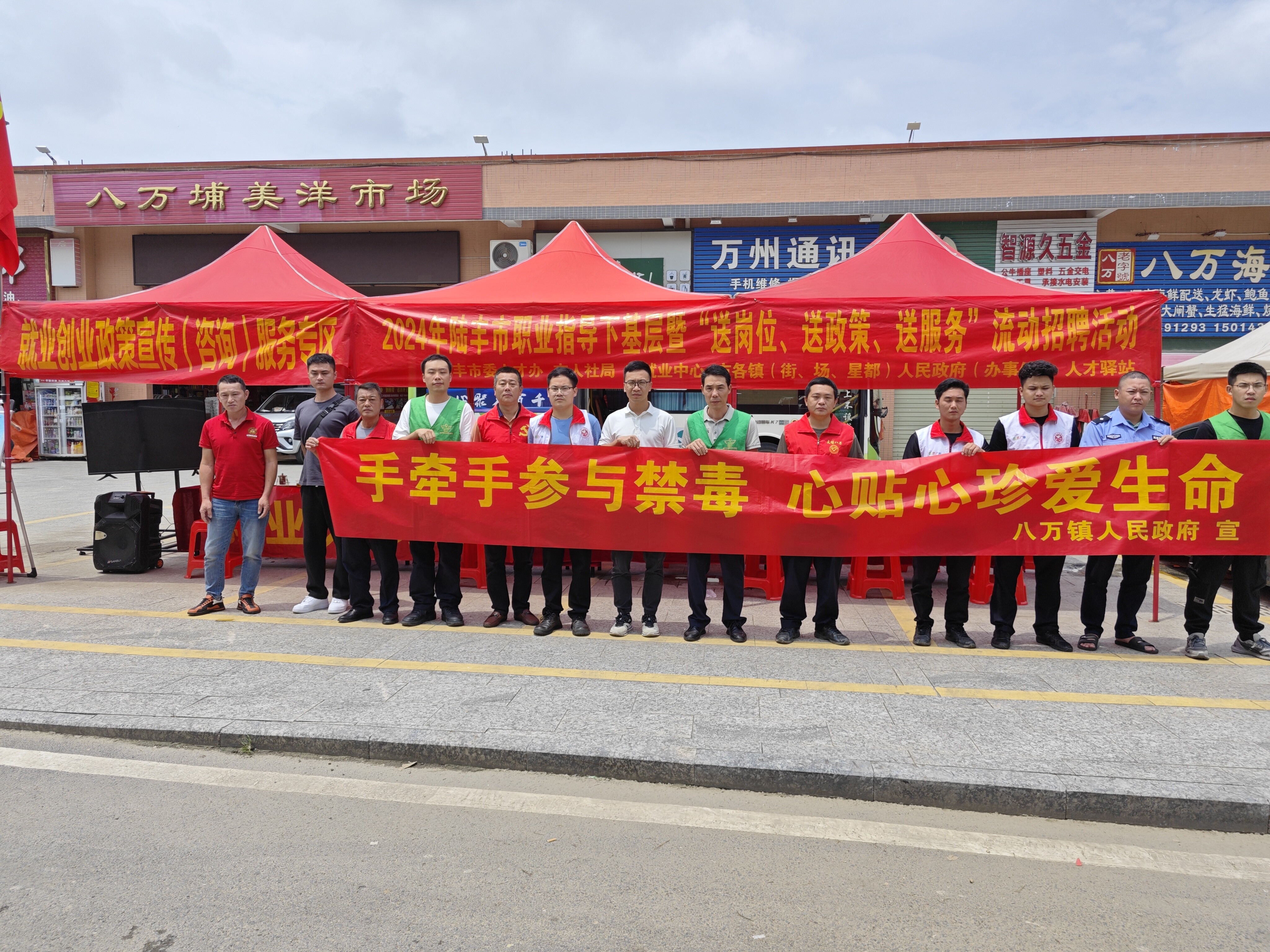 為進(jìn)一步增強(qiáng)全民禁毒意識(shí),向求職務(wù)工人員普及禁毒知識(shí),整體推進(jìn)群眾禁毒宣傳教育全覆蓋,2024年5月8日,以汕尾(陸豐)市職業(yè)指導(dǎo)下基層招聘活動(dòng)為契機(jī),聯(lián)合市人才辦、人社局和就業(yè)中心,我鎮(zhèn)組織禁毒辦、團(tuán)鎮(zhèn)委、公共服務(wù)辦,八萬(wàn)村(社區(qū))兩委干部、志愿者、網(wǎng)格員共30余人,在八萬(wàn)村埔美洋廣場(chǎng)開(kāi)展禁毒宣傳及戒康人員就業(yè)幫扶活動(dòng)。