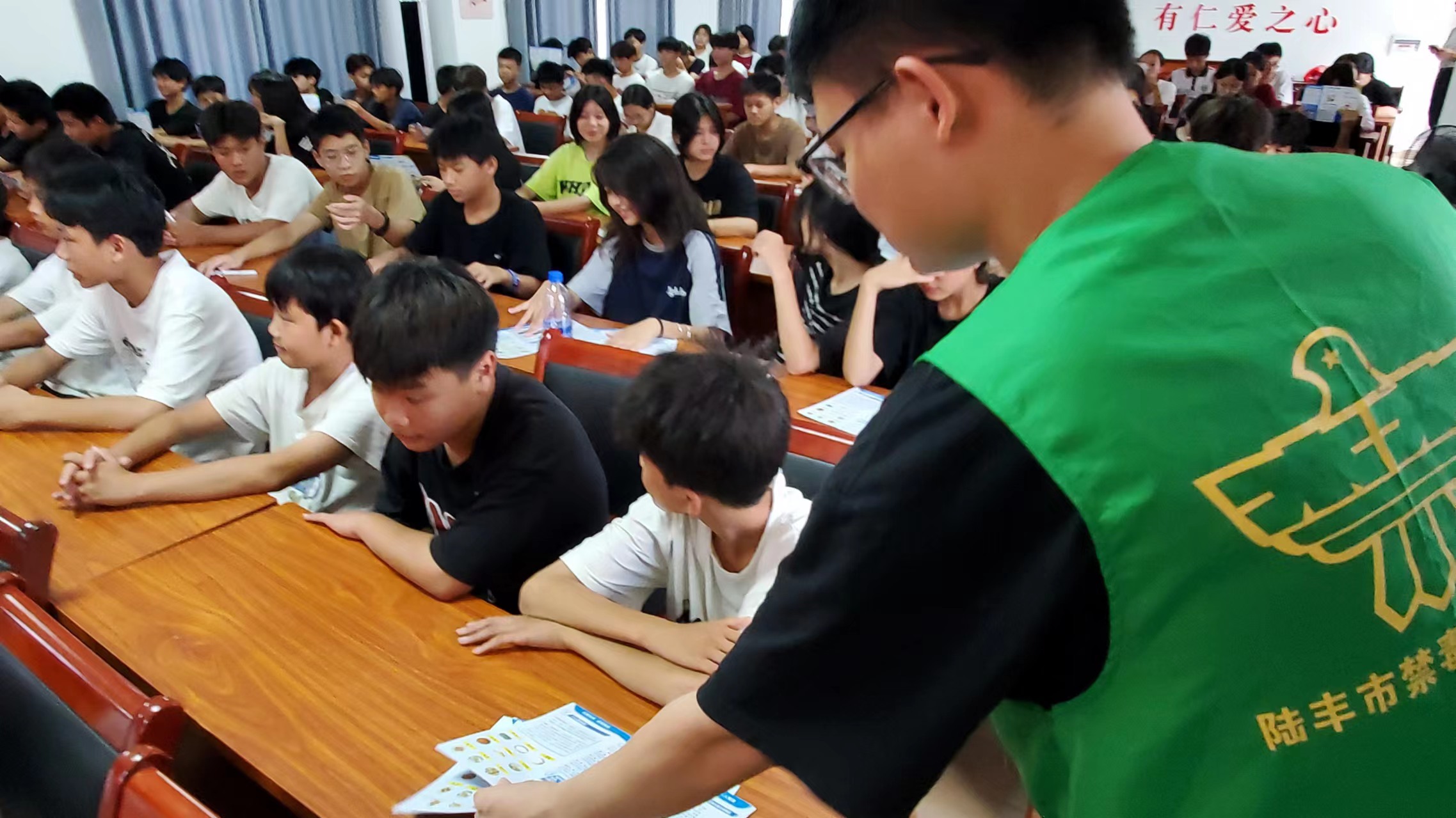 此次講座中,由兩位律師向同學(xué)們生動(dòng)講解“6.26”國(guó)際禁毒日的由來和,教導(dǎo)如何辨識(shí)大麻、冰毒、海洛因等傳統(tǒng)毒品和依托咪酯、LSD、三唑侖等新型毒品,以PPT圖文介紹、現(xiàn)場(chǎng)互動(dòng)解答、視頻普法等形式向師生普及相關(guān)禁毒知識(shí),提醒大家要時(shí)刻提高警惕,學(xué)會(huì)辨別在日常生活中的偽裝毒品。特別是暑假將至,告誡學(xué)生不要隨意出入娛樂場(chǎng)所,且不要接受陌生人提供的物品,同時(shí),引導(dǎo)學(xué)生樹立正確的人生觀,不為趕時(shí)髦或盲目尋求刺激而去嘗試“上頭電子煙”。活動(dòng)結(jié)束后,禁毒志愿者向?qū)W校師生們分發(fā)《禁毒倡議書》宣傳單和禁毒畫冊(cè)。