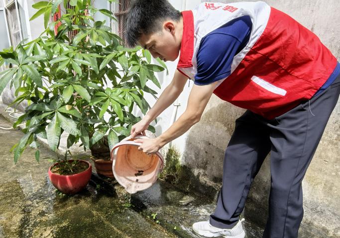 同時(shí)穿梭于街頭巷尾,逐樓逐棟仔細(xì)排查,對(duì)每處可能滋生蚊蟲的積水點(diǎn),翻盆倒罐、清除積水、開展病媒防治消殺,確保登革熱防控工作全覆蓋、無盲區(qū)、無死角。