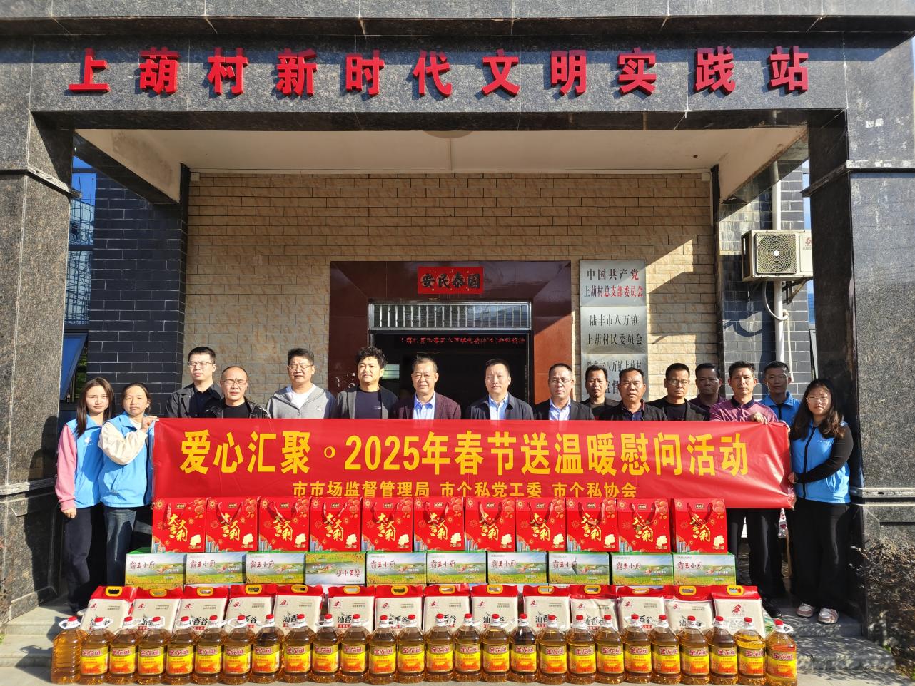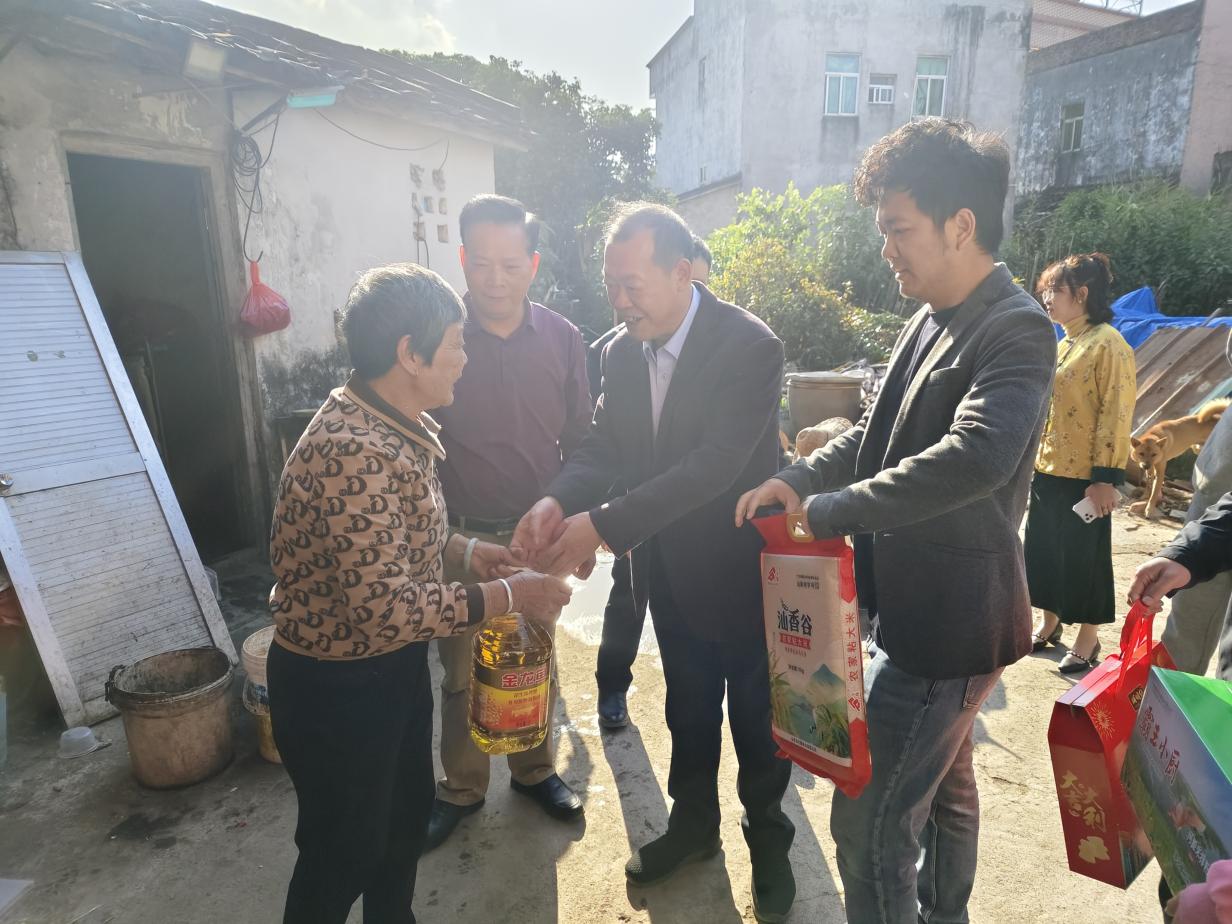 1月15日,在新春佳節(jié)即將來臨之際,汕尾市市場(chǎng)監(jiān)督管理局副局長陳文戟帶領(lǐng)市個(gè)私黨工委、市個(gè)私協(xié)會(huì)到八萬鎮(zhèn)開展“愛心匯聚·2025年春節(jié)送溫暖”慰問活動(dòng),走訪慰問了困難群眾,為其送上大米、食用油、禮盒等慰問品,并向他們送去新春的祝福。八萬鎮(zhèn)莊小民鎮(zhèn)長陪同走訪慰問。