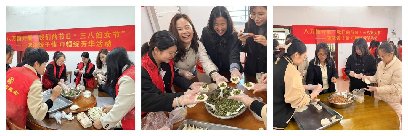 當(dāng)天中午,八萬鎮(zhèn)組織參會人員開展“我們的節(jié)日·三八婦女節(jié)”——濃濃餃子情 巾幗綻芳華活動。活動現(xiàn)場一片歡聲笑語,大家邊擂茶邊包餃子,各自分享著生活工作中的點(diǎn)滴趣事,處處洋溢著“家”的味道和“家”的溫馨?;顒咏Y(jié)束后,大家紛紛表示,今年的“三八”是別樣的“三八”,餃子里包進(jìn)了每一個(gè)人的快樂和幸福,擂茶架起了大家的深情厚誼,將把活動熱情化為工作激情,攜手共進(jìn)、同心同力,激揚(yáng)巾幗志,建功新時(shí)代。