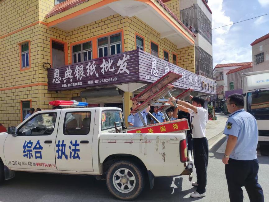 鐵腕“治六亂”,秩序煥新顏。為全面提升圩鎮(zhèn)人居環(huán)境,規(guī)范圩鎮(zhèn)管理秩序,營(yíng)造干凈整潔、文明經(jīng)營(yíng)、暢通舒適的生活生產(chǎn)環(huán)境。八萬(wàn)鎮(zhèn)黨委、政府組織執(zhí)法隊(duì)利劍出鞘,針對(duì)占道經(jīng)營(yíng)、亂堆亂放、亂貼亂掛等“六亂”頑疾開(kāi)展集中攻堅(jiān)。執(zhí)法隊(duì)員采用“宣傳先行+勸導(dǎo)為主+執(zhí)法跟進(jìn)”的方式,對(duì)主干道、市場(chǎng)周邊等重點(diǎn)地段進(jìn)行全面巡查,耐心勸導(dǎo)沿街商戶規(guī)范經(jīng)營(yíng),落實(shí)“門(mén)前三包”責(zé)任,并協(xié)助商戶清理占道物品,引導(dǎo)流動(dòng)攤販進(jìn)入指定區(qū)域經(jīng)營(yíng),引導(dǎo)車輛規(guī)范停放。對(duì)拒不整改的依法采取強(qiáng)制措施,現(xiàn)場(chǎng)收扣占道經(jīng)營(yíng)物品、清除亂堆雜物,以強(qiáng)有力的執(zhí)法手段維護(hù)市場(chǎng)秩序,有效打通了鎮(zhèn)區(qū)秩序“堵點(diǎn)”,為典型鎮(zhèn)建設(shè)項(xiàng)目的落實(shí)落地奠定了基礎(chǔ)。