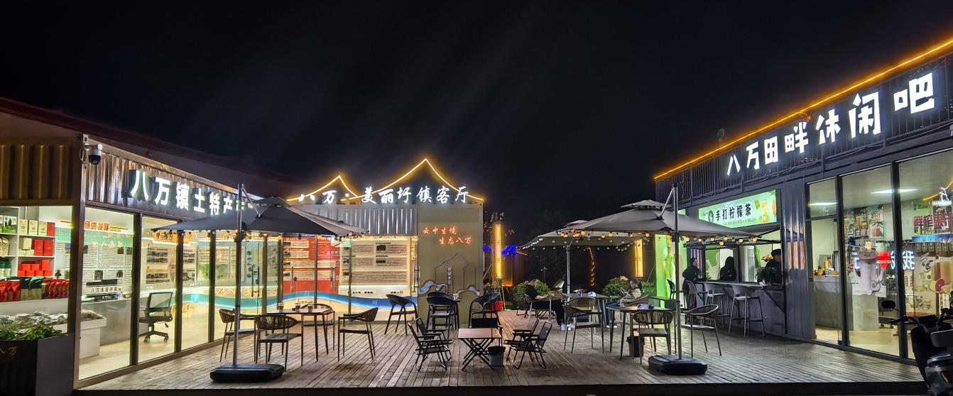 八萬鎮(zhèn)以美麗圩鎮(zhèn)“七個(gè)一”建設(shè)為核心抓手,打破“單一展示”思維定式,將美麗圩鎮(zhèn)客廳打造為多業(yè)態(tài)聚合、多功能集成的鎮(zhèn)域核心樞紐,串聯(lián)周邊優(yōu)質(zhì)公共服務(wù)資源,精心打造“便民生活圈”。圩鎮(zhèn)客廳整合電商驛站、農(nóng)產(chǎn)品展示、休閑娛樂三大核心業(yè)態(tài),“一站式”滿足群眾多元需求:休閑餐吧已建成運(yùn)營,提供輕食茶飲、本土特色小吃等服務(wù),成為群眾日常小聚、休閑放松的優(yōu)選場(chǎng)所;農(nóng)產(chǎn)品展銷區(qū)集中陳列老水雞、文德單叢茶、牛大力等本土特色產(chǎn)品,打造極具辨識(shí)度的本土品牌窗口;電商驛站嵌入客廳核心區(qū)域,整合直播帶貨、線上銷售等服務(wù),全面打通產(chǎn)品上行銷售渠道。此外,以圩鎮(zhèn)客廳為核心,串聯(lián)八萬文體廣場(chǎng)、草地公園、休閑步道和綜合文化站,構(gòu)建群眾休閑集聚區(qū);整合綜合市場(chǎng)、便民充電站、農(nóng)商銀行、供電所等公共資源,打造綜合服務(wù)平臺(tái)。如今,無論是老人晨起健身、青年創(chuàng)業(yè)增收、家庭周末小聚,還是群眾往來辦事,圩鎮(zhèn)客廳均以多元功能滿足不同群體需求,真正成為群眾“愿來、愛來、常來”的生活聚集地與情感共鳴地。