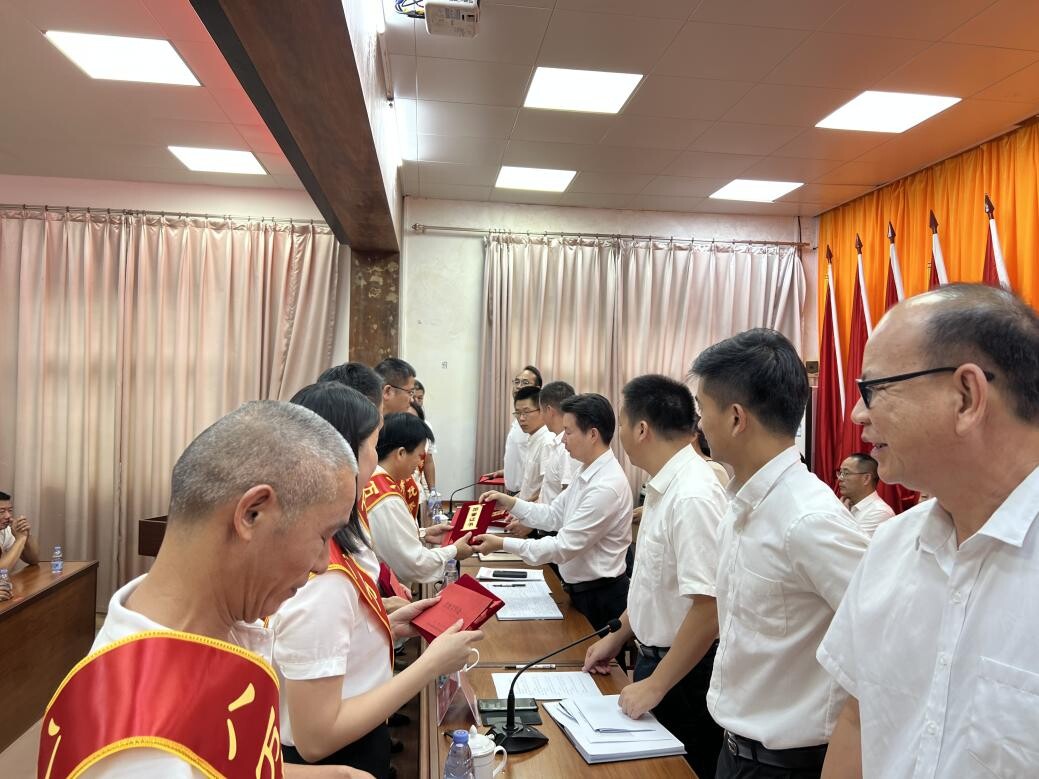 鎮(zhèn)班子成員對(duì)受表彰優(yōu)秀個(gè)人進(jìn)行頒獎(jiǎng)