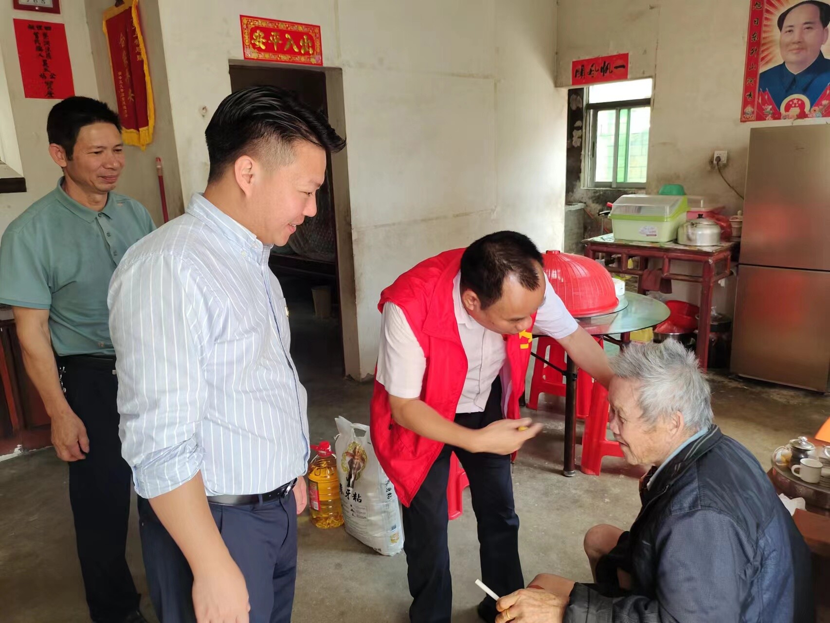 10月23日,陸豐市人民法院院長、八萬鎮(zhèn)駐鎮(zhèn)領(lǐng)導(dǎo)黃海欽在八萬鎮(zhèn)黨委書記蔡景章的陪同下走訪慰問百歲老人,先后和老人及其家屬親切交談,詳細(xì)了解老人的生活起居、健康狀況等,叮囑家屬要妥善照料好老人的飲食起居,黃海欽院長指出,要多關(guān)心老人的需求,持續(xù)用心做好為老服務(wù),及時(shí)幫助老人解決生活中遇到的困難,讓他們生活更加安心、順心。臨近中午,黃海欽院長一行來到高塘村幸福食堂陪同孤寡老人就餐,與老人促膝交談,閑敘溫馨家常。