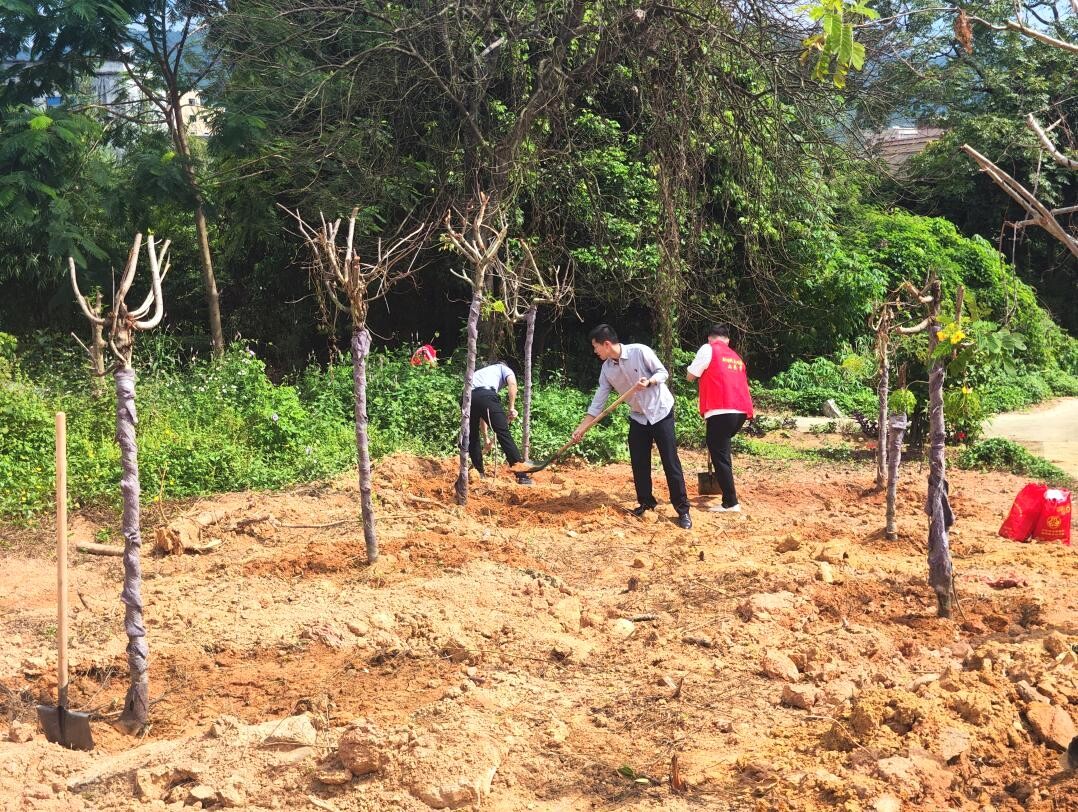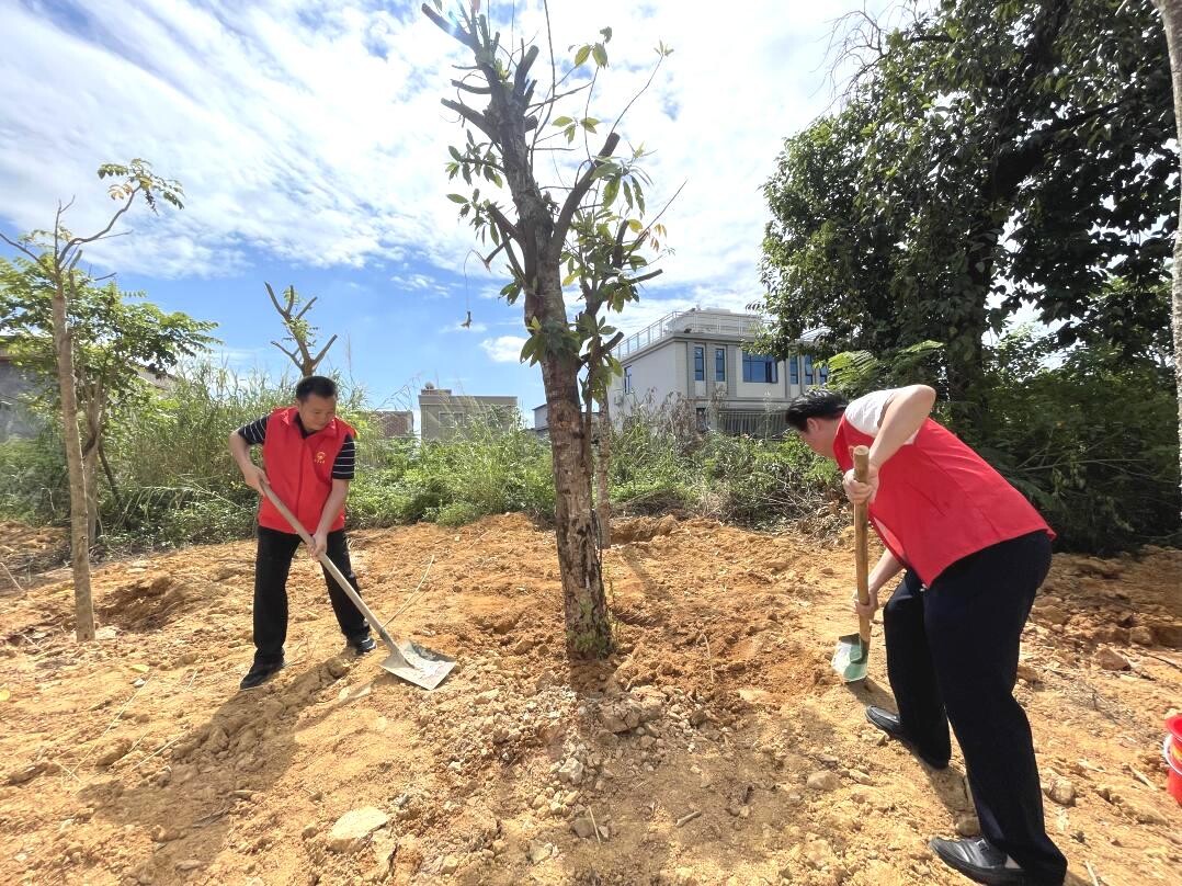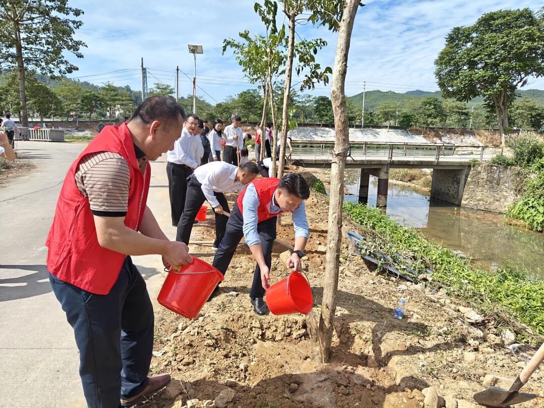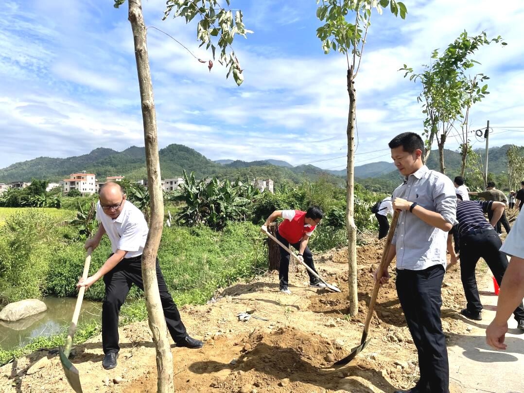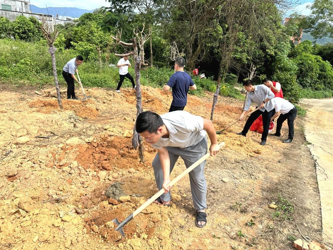 活動當日,陽光明麗,微風和煦,八萬鎮(zhèn)吉水村委琳珠村植樹現(xiàn)場,一派熱火朝天,大家手拿鐵鍬苗木,挖坑培土,澆水正苗,配合默契,忙而有序。市法院、八萬鎮(zhèn)領(lǐng)導干部種下象征的“共創(chuàng)森林城市,共建綠美陸豐”的大葉紫微,凝聚建設綠美陸豐精神共識,共同續(xù)寫綠美生態(tài)八萬篇章。