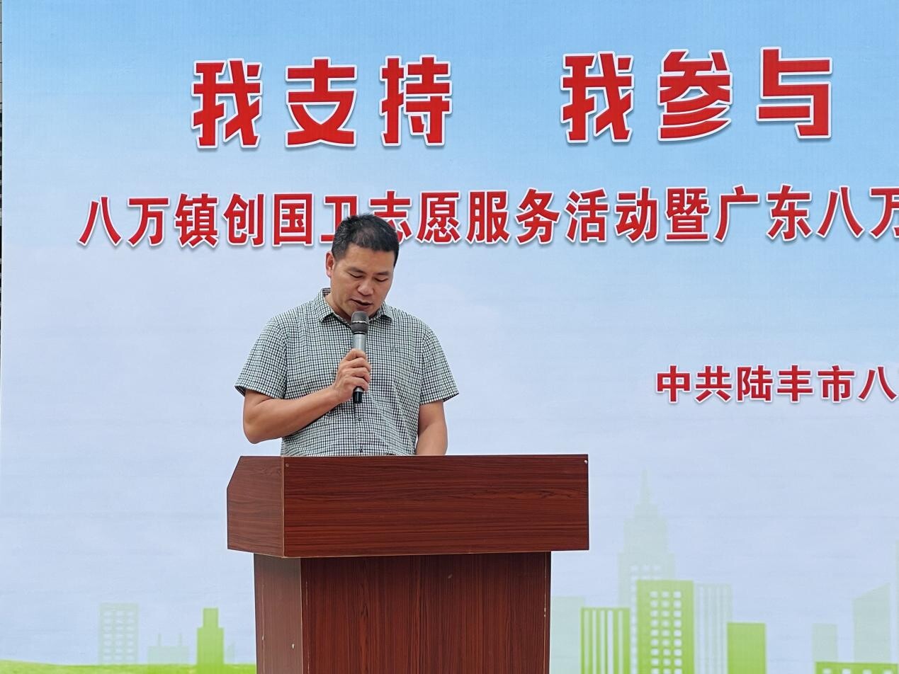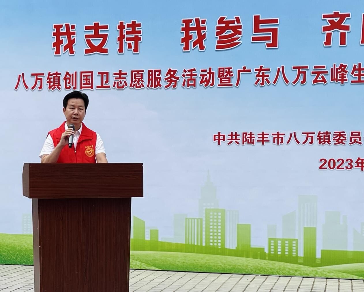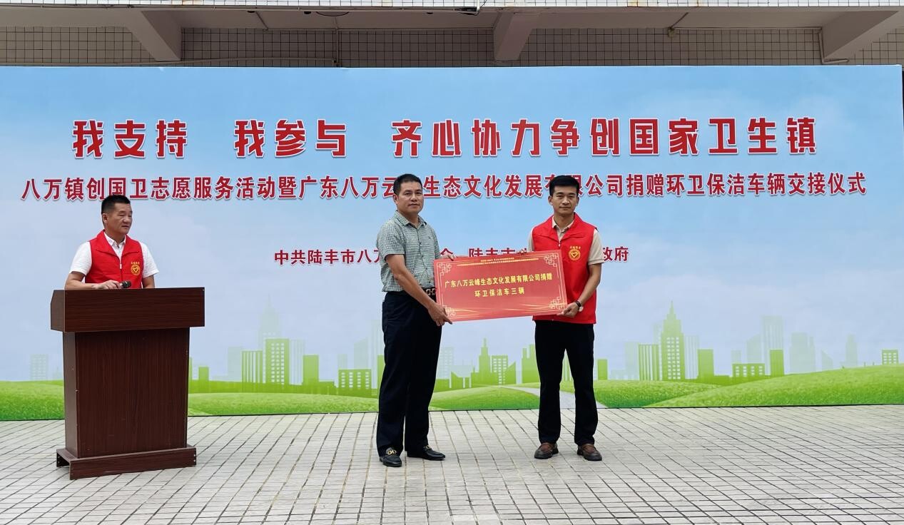 “我支持,我參與,齊心協(xié)力爭創(chuàng)國家衛(wèi)生鎮(zhèn)”,11月11日,八萬鎮(zhèn)舉行創(chuàng)國衛(wèi)志愿服務(wù)活動暨廣東八萬云峰生態(tài)文化發(fā)展有限公司捐贈環(huán)衛(wèi)保潔車輛交接儀式。