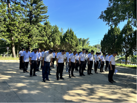全體人員懷著崇敬的心情向革命烈士紀念碑行三鞠躬禮,向革命先烈致以無限敬仰和深切緬懷。