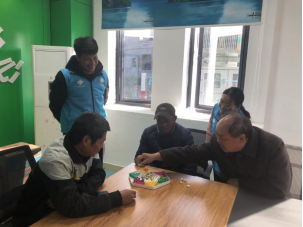 最后我們?yōu)榇舜螀⒓踊顒拥臍埣踩藭T們發(fā)放大米、油、面、日歷、春聯(lián)作為慰問品,希望他們在新的一年能越來越好。在新的一年社工們也會用最真切用心的康園服務(wù)與會員們攜手前進,共同成長,營造我們溫暖的康園大家庭!