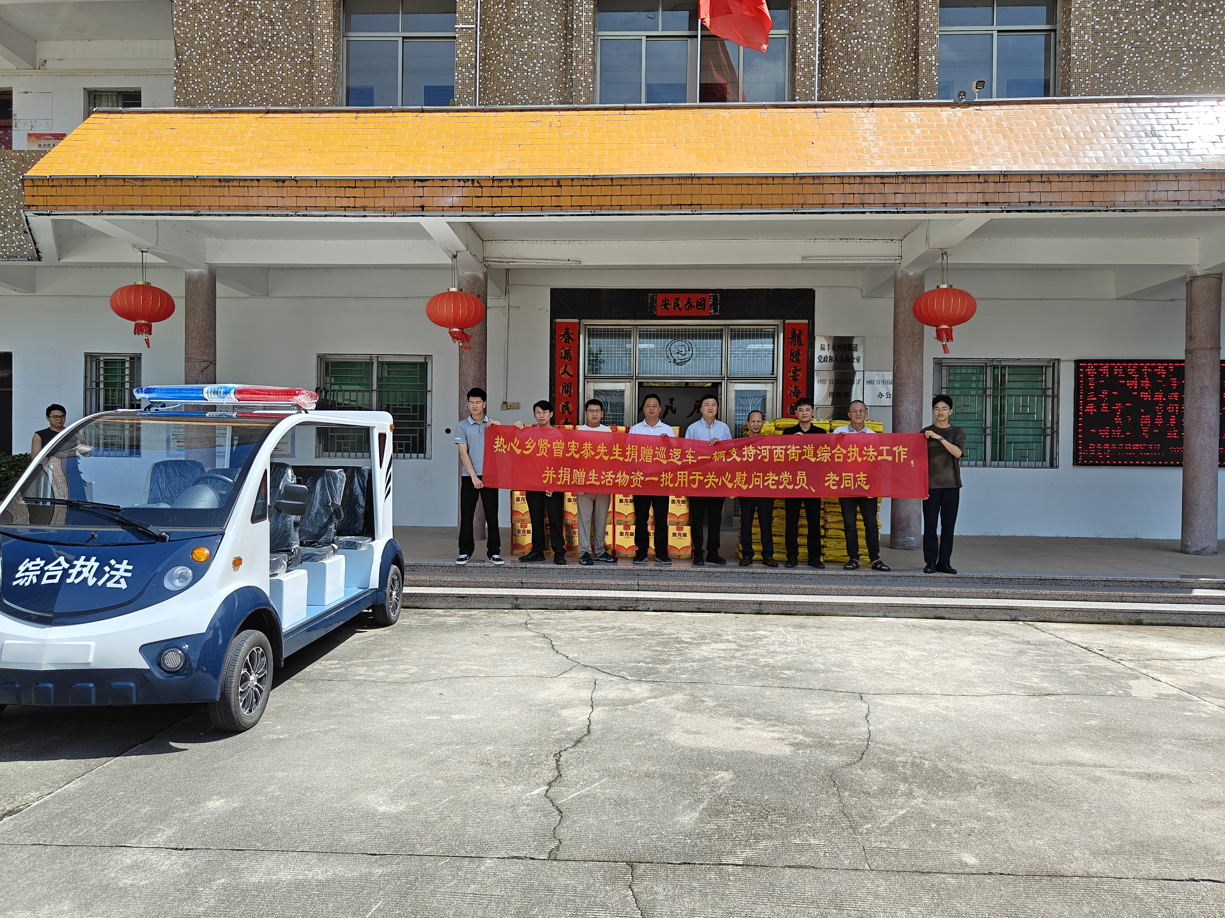 為助力推進(jìn)河西街道“百千萬(wàn)工程”工作高質(zhì)量發(fā)展,提高行政服務(wù)能力,加強(qiáng)巡察工作和關(guān)愛(ài)一老一小。6月28日,河西街道山腳村鄉(xiāng)賢曾憲龔先生捐贈(zèng)行政巡邏車一臺(tái)、食用油80桶、米80包。