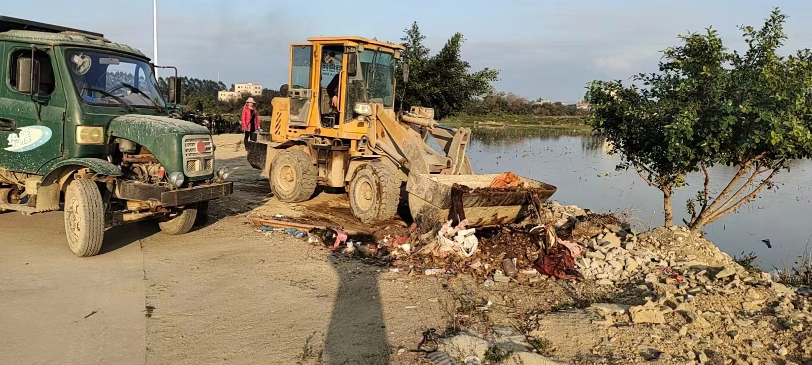 2月12日,各村(社區(qū))迅速組織動員“兩委”干部、網(wǎng)格員、黨員、志愿者、群眾等人員,紛紛拿起掃帚、鏟子等清潔工具,清理整治房前屋后、背街小巷的堆積物、雜草,打撈周邊水域漂浮物等,更是出動挖機、拖拉機等大型車輛,加快垃圾清運效率,推動人居環(huán)境提檔升級,使河西“凈起來、綠起來、亮起來、美起來”。