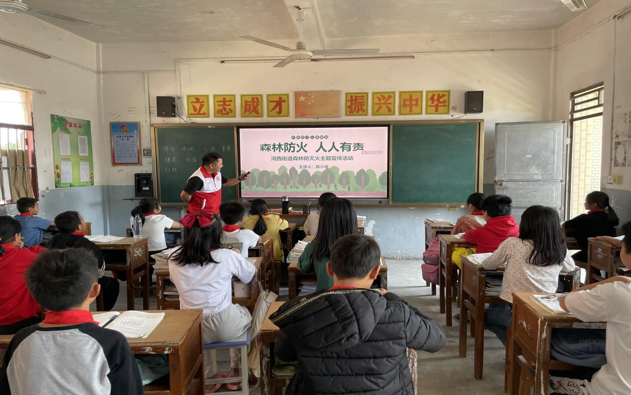 為高質(zhì)量推動(dòng)主題教育走深走實(shí),全面貫徹落實(shí)省市“百千萬(wàn)工程”部署要求,進(jìn)一步做好森林防火宣傳教育工作,筑牢森林安全“防火墻”,11月28日上午,河西街道新時(shí)代文明實(shí)踐所聯(lián)合街道綜治辦、團(tuán)委前往河西街道竹林小學(xué)開(kāi)展森林防滅火安全教育宣傳活動(dòng)。