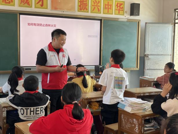 課堂上,宣講志愿者陳小龍通過(guò)課件、宣傳視頻、互動(dòng)小游戲等方式為同學(xué)們?cè)敿?xì)介紹了各種森林火災(zāi)的種類(lèi)、危害和預(yù)防措施,講解了森林防火的政策法規(guī),野外用火的管理規(guī)定,重點(diǎn)介紹了森林防火的重要性、森林火災(zāi)的危害和發(fā)生的原因以及保護(hù)森林、杜絕火源等相關(guān)知識(shí),并教育同學(xué)們不上山玩火,不在野外用火,不帶火種到森林,發(fā)現(xiàn)森林火情要及時(shí)撥打12119火警電話(huà)。同時(shí)通過(guò)派發(fā)森林防火宣傳單、簽訂承諾書(shū)等方式,有效增強(qiáng)了同學(xué)們對(duì)森林火災(zāi)的防范意識(shí)。