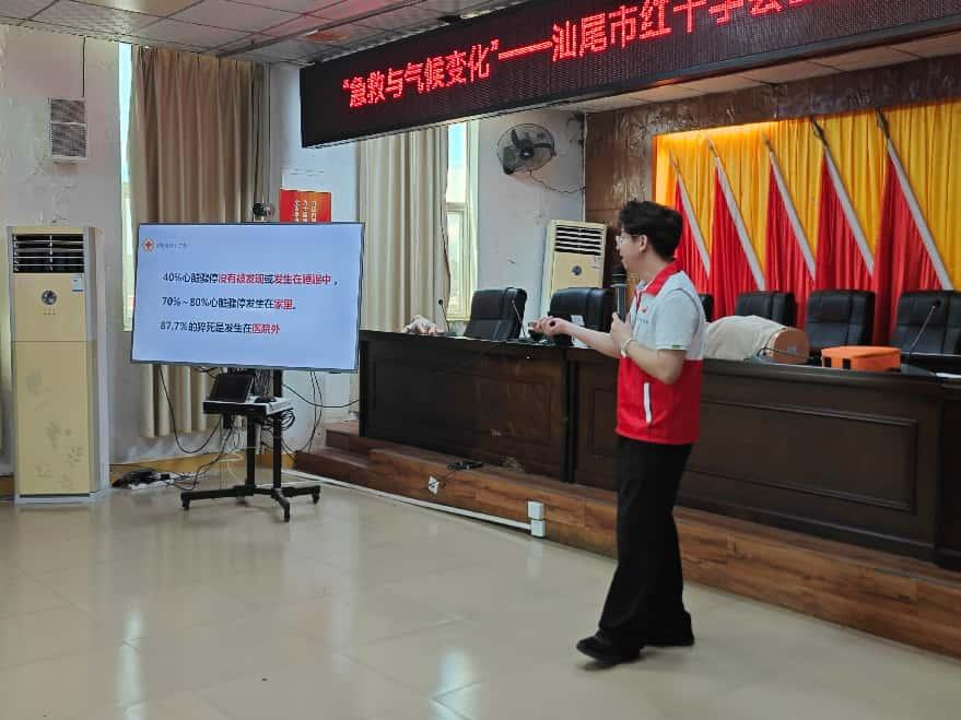 為深入學(xué)習(xí)貫徹習(xí)近平總書記關(guān)于健康中國(guó)建設(shè)的重要論述精神,落實(shí)省委“1310”具體部署、市委“1+2+9”工作安排,攻堅(jiān)“百千萬(wàn)工程”三年初見成效工作,進(jìn)一步普及應(yīng)急救護(hù)知識(shí)和技能,有效強(qiáng)化我鎮(zhèn)應(yīng)急救援力量在突發(fā)事件、意外傷害、事故現(xiàn)場(chǎng)中的救護(hù)知識(shí)和技能,隨時(shí)應(yīng)對(duì)工作、生活中可能出現(xiàn)的突發(fā)情況。2025年9月4日上午,金廂鎮(zhèn)聯(lián)合汕尾市紅十字會(huì)、陸豐市紅十字會(huì)在金廂鎮(zhèn)人民政府5樓會(huì)議室開展紅十字應(yīng)急救護(hù)知識(shí)普及活動(dòng),本次培訓(xùn)共組織金廂鎮(zhèn)全體干部職工、各村(社區(qū))兩委干部以及網(wǎng)格員等共計(jì)一百余人參與。