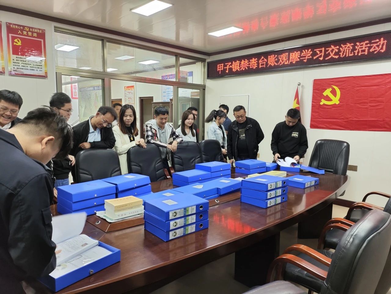 隨后,參會(huì)一行人到新湖社區(qū)進(jìn)行禁毒臺(tái)賬觀摩學(xué)習(xí)、交流?,F(xiàn)場(chǎng),各村(社區(qū))分管禁毒副書(shū)記及禁毒專(zhuān)干認(rèn)真翻閱新湖社區(qū)禁毒示范創(chuàng)建臺(tái)賬資料,各參加人員對(duì)如何做好相關(guān)臺(tái)賬進(jìn)行了經(jīng)驗(yàn)分享。交流會(huì)上,鎮(zhèn)禁毒辦強(qiáng)調(diào),各參會(huì)人員要以此次禁毒觀摩學(xué)習(xí)交流為契機(jī),查找本社區(qū)存在的不足和差距,做好相關(guān)完善工作。