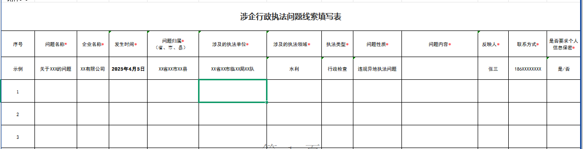 附件:《涉企行政執(zhí)法問(wèn)題線索填寫(xiě)表》