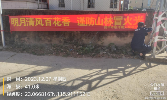 村(社區(qū))干部、網(wǎng)格員通過張貼《陸豐市人民政府關(guān)于發(fā)布森林防火禁火令的通告》、懸掛森林防火橫幅標(biāo)語、走起入戶發(fā)放森林防火宣傳單等宣傳資料、宣傳車和流動音響循環(huán)播放宣傳、開展森林防火宣傳教育課程等形式,增強(qiáng)群眾森林防火意識,營造濃厚的宣傳氛圍,防范于未“燃”。