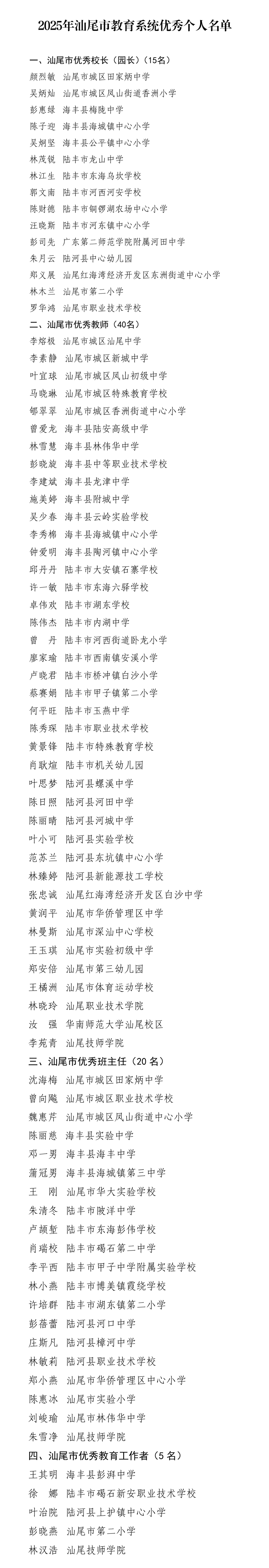 祝賀!2025年汕尾市教育系統(tǒng)優(yōu)秀個人名單公布