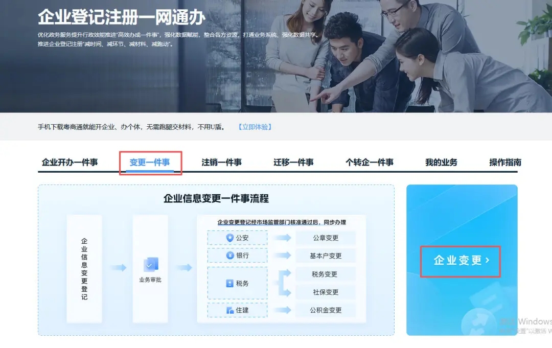 點(diǎn)擊“變更一件事”—“企業(yè)變更”—開始辦理