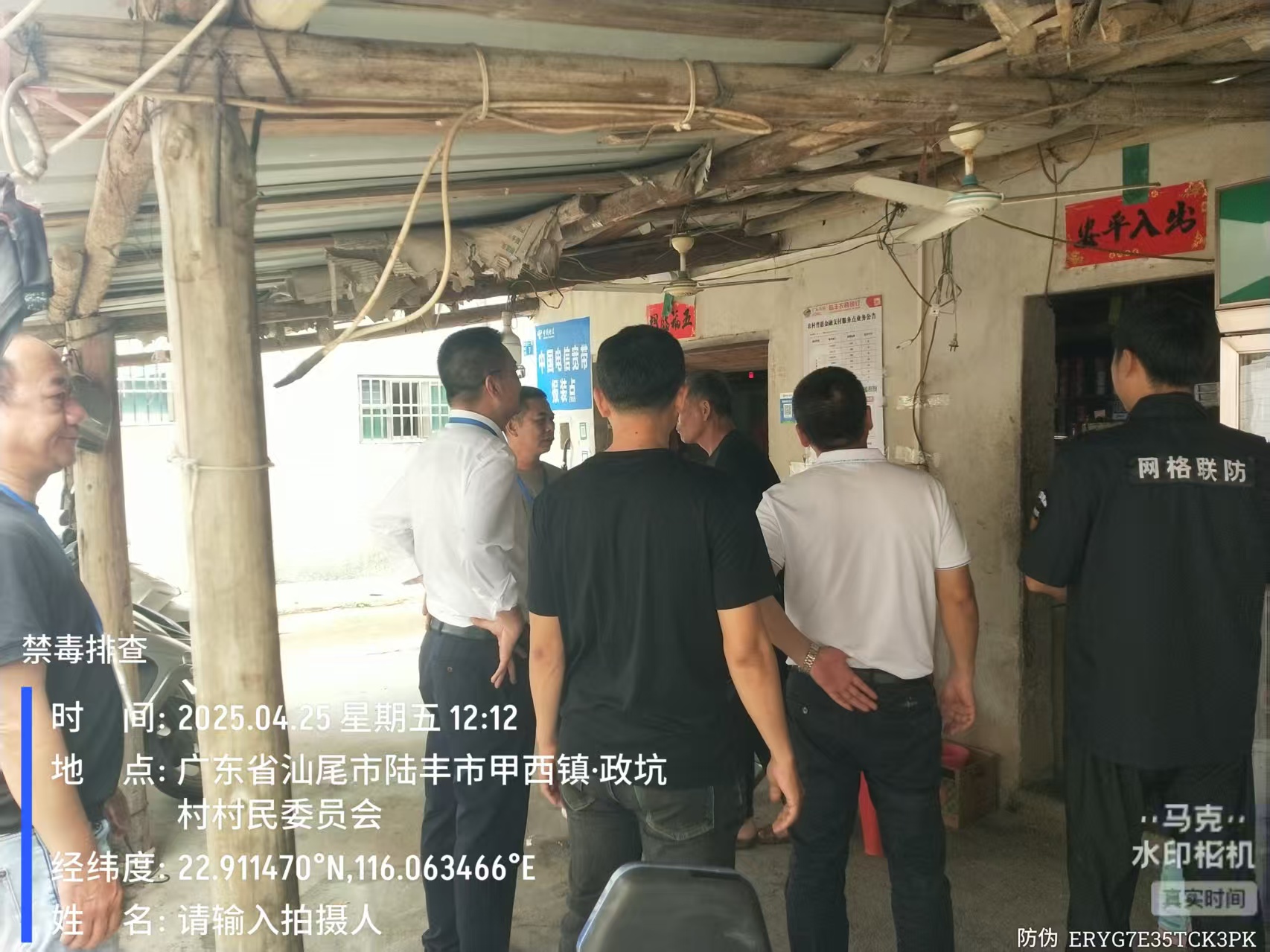 會(huì)后,為貫徹落實(shí)會(huì)議要求,陸豐市交通運(yùn)輸局黨組書記、局長(zhǎng)陳向群同志帶領(lǐng)駐村禁毒工作組、村“兩委”干部、村網(wǎng)格聯(lián)防隊(duì)員對(duì)政坑村涉毒人員住戶開(kāi)展涉毒排查行動(dòng)。本次行動(dòng)共排查涉毒房屋9間,小賣部2間;行動(dòng)過(guò)程暫未發(fā)現(xiàn)涉毒跡象。