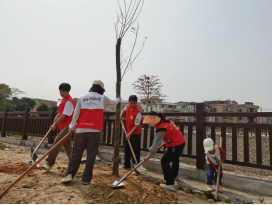 在植樹活動現(xiàn)場,大家熱情飽滿、干勁十足,每個人揮鍬鏟土、扶樹填土、培土踩實、堆起圍堰、提桶澆水,合力載下一棵棵苗木,青年志愿者、少先隊員們以實際行動為陸豐大地再添新綠,共同播種春天的希望,一排排新栽樹苗錯落有致、迎風挺立,展現(xiàn)出勃勃生機。