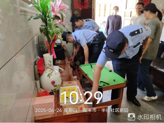 活動共設(shè)一個主會場,16個分會場。主會場活動由陸豐市副市長、公安局局長萬偉城同志負責主持,共分為三項議程,一是進行禁毒集體宣誓,二是由陸豐市委常委、政法委書記陳武鋼同志進行講話,三是根據(jù)既定清理清查方案和宣傳項目組織開展活動。甲子鎮(zhèn)15個村(社區(qū))根據(jù)“6?26”國際禁毒日全民禁毒教育宣傳工作部署,在轄區(qū)內(nèi)開展多種形式宣傳活動。宣傳過程中,6?26宣傳組合隊伍突出全民動員、多維度滲透、教育與行動并重,通過“六進”設(shè)置宣傳橫幅,發(fā)放禁毒宣傳手冊,組織現(xiàn)場講座等方式凝聚禁毒共識,形成宣傳合力,向公眾科普毒品危害、結(jié)合實際毒品案例介紹新型毒品偽裝手段及防毒技巧,提高全社會禁毒意識,引導群眾自覺抵制毒品侵害并動員身邊親朋好友共同學習禁毒知識;同時以此為契機在半徑社區(qū)、城西社區(qū)組織開展社會面統(tǒng)一清理清查專項行動,行動中各行動小組轄區(qū)內(nèi)的出租屋、酒店、五金廠等重點場所進行了地毯式全面排查,逐戶核查信息采集情況,重點關(guān)注易藏毒涉毒區(qū)域,嚴防社會安全潛在風險隱患事項發(fā)生,打擊震懾涉毒違法犯罪行為現(xiàn)象。據(jù)統(tǒng)計,此次活動,共發(fā)放宣傳資料2000余份,宣傳覆蓋人數(shù)3000余人;半徑社區(qū)、城西社區(qū)社會面統(tǒng)一清理清查專項行動共計各重點場所27間,居民房屋300余戶。