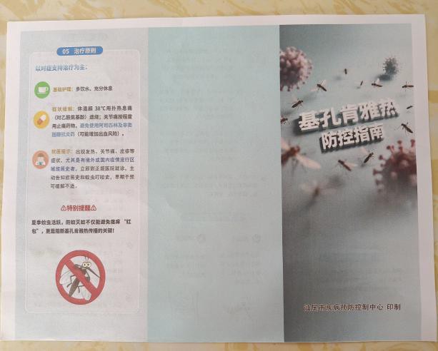 在宣傳工作方面:竹坑村以“入戶聯(lián)心”為契機(jī),黨員志愿者們深入村居,向村民和商戶派發(fā)基孔肯雅熱防控知識(shí)宣傳單,詳細(xì)講解防蚊滅蚊要點(diǎn)和疾病癥狀,重點(diǎn)提醒村民及時(shí)清除家中積水容器、花盆托盤(pán)等蚊蟲(chóng)孳生地,安裝紗窗紗門(mén),做好個(gè)人防護(hù);同時(shí),充分利用村居戶外LED電子屏幕,滾動(dòng)播放通俗易懂的防控宣傳標(biāo)語(yǔ),使用廣播大喇叭播放相關(guān)宣傳聲帶,重點(diǎn)向老年人普及相關(guān)知識(shí)。