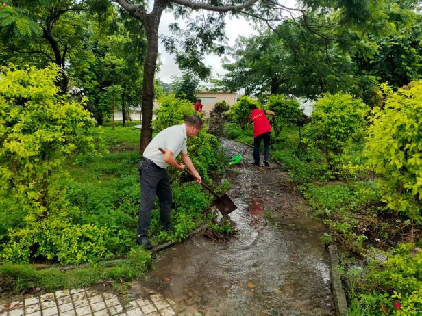 當(dāng)日,鎮(zhèn)村干部、網(wǎng)格員、文明實(shí)踐志愿者等冒雨開展行動(dòng),對(duì)村內(nèi)的小公園、草坪、群眾健身廣場(chǎng)的垃圾、果皮、紙屑和雜草、枯枝等進(jìn)行清理,隨后進(jìn)行全面清潔和消毒,預(yù)防細(xì)菌滋生。同時(shí),行動(dòng)人員還對(duì)村內(nèi)河流、溝渠的塑料袋、枯枝、水生植物殘?bào)w等漂浮物進(jìn)行打撈,確保水體潔凈。