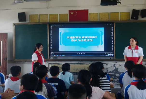同時為提升學生對基孔肯雅熱的認知水平與自我防護能力,提升學生對基孔肯雅熱的認知與防控能力,通過學生帶動家庭,家庭影響社會的聯(lián)動效應,東埔村文明實踐站組織開展《基孔肯雅熱防控宣傳》進校園活動。