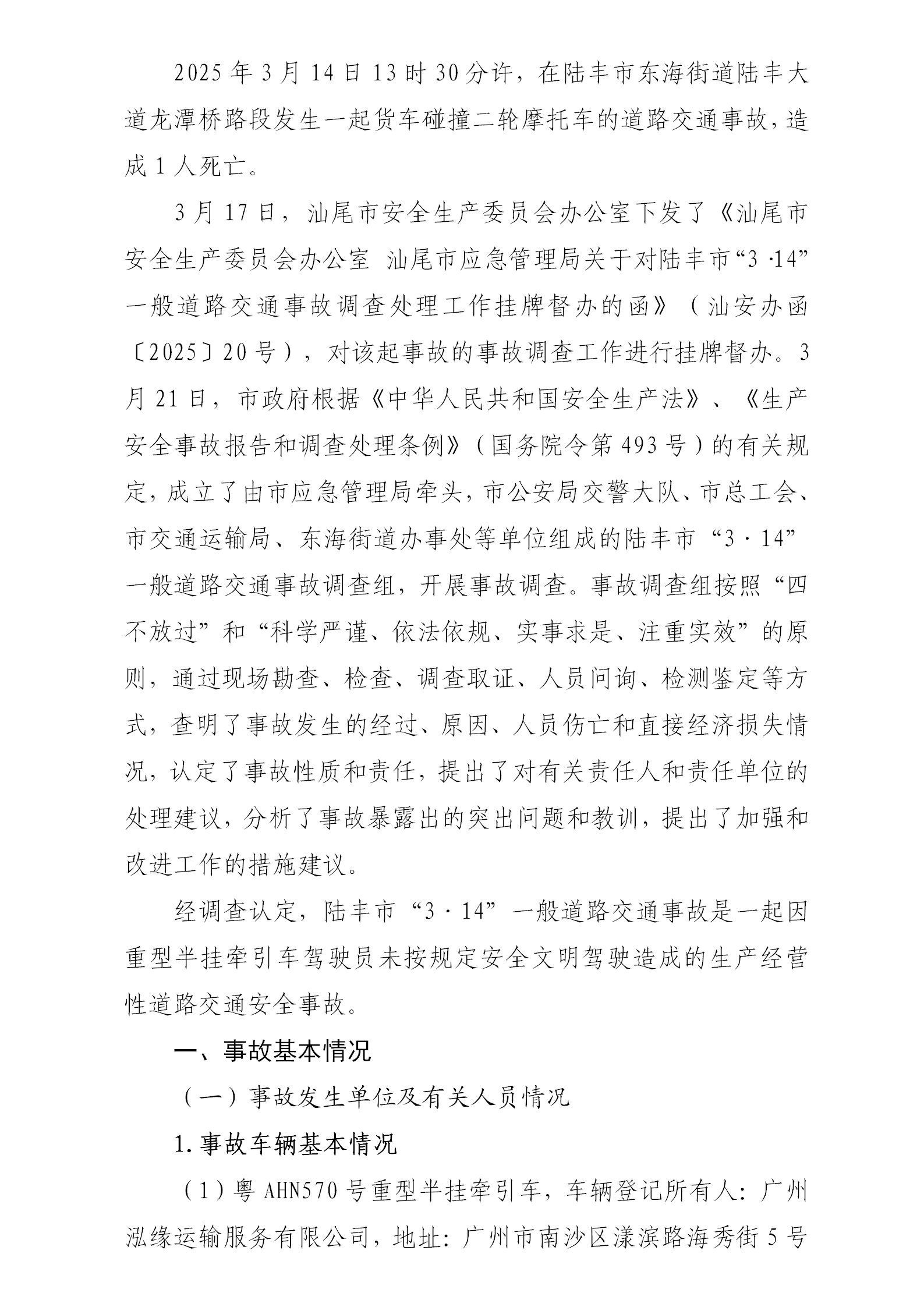 陸豐市“3·14”一般道路交通事故調(diào)查報告