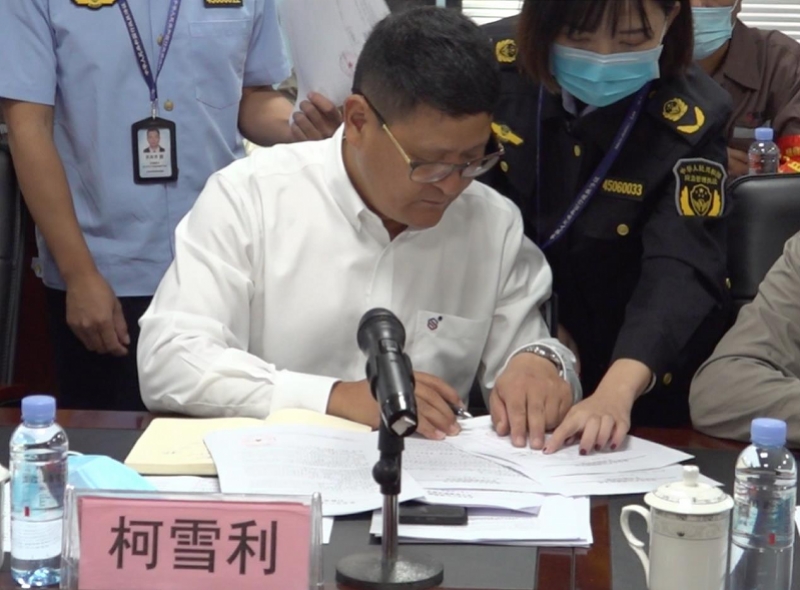 企業(yè)主要負(fù)責(zé)人在執(zhí)法文書上簽字。南都記者 王森 攝